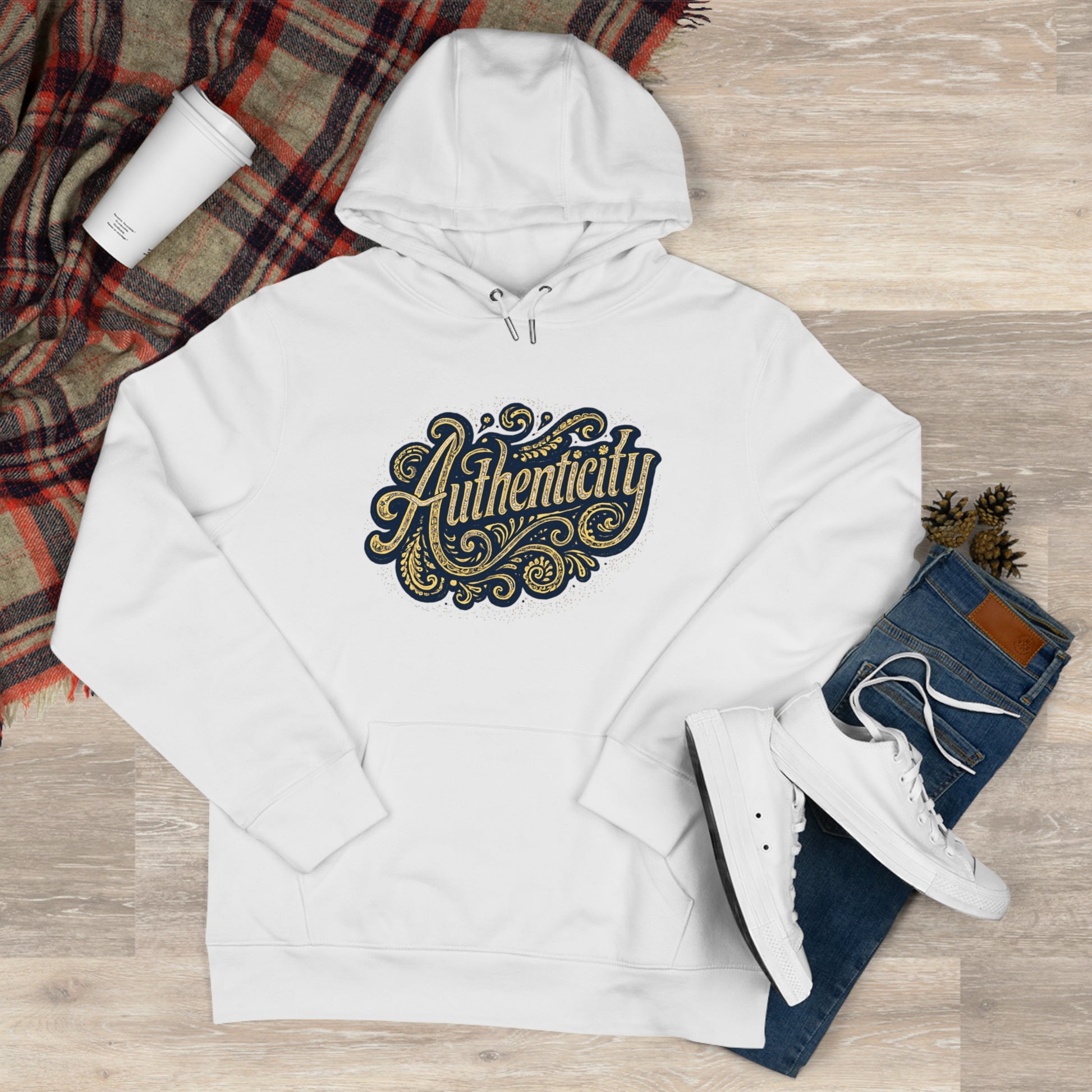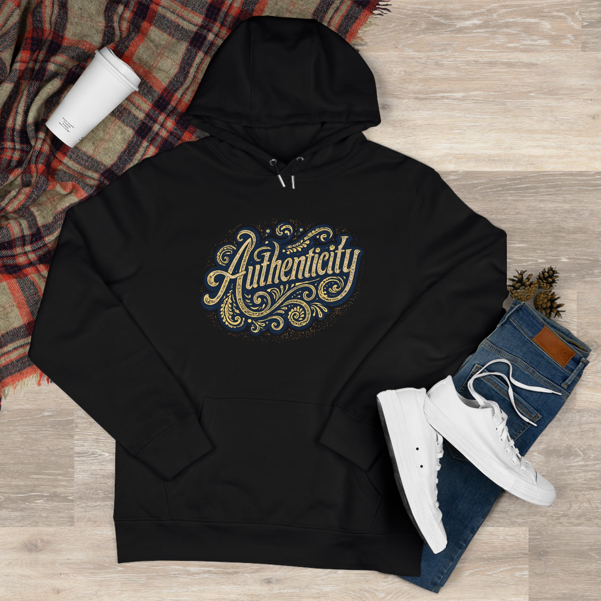 Authenticity Script Hoodie — 'Authenticity' Vintage Ornate Graphic Hooded Sweatshirt