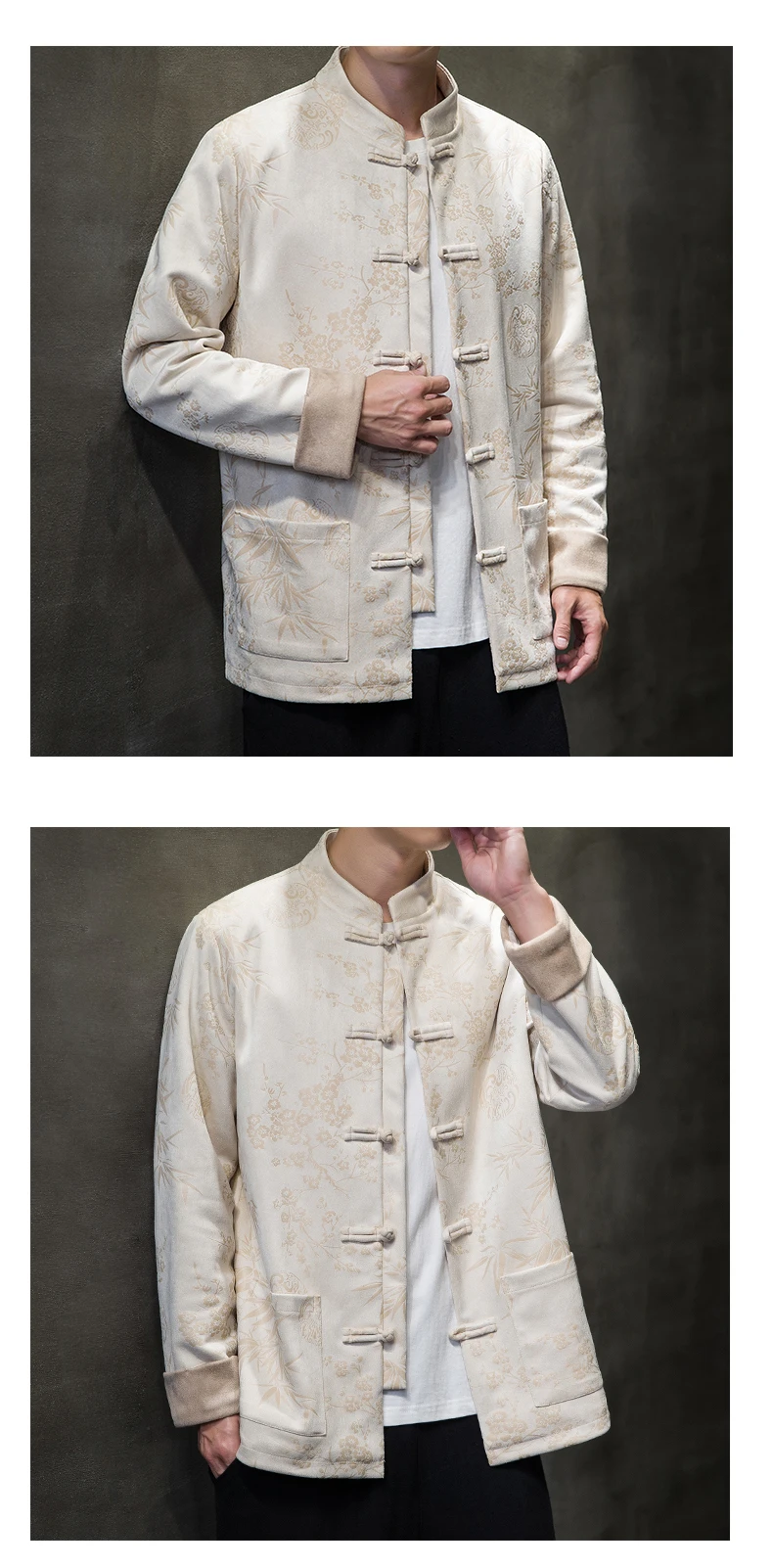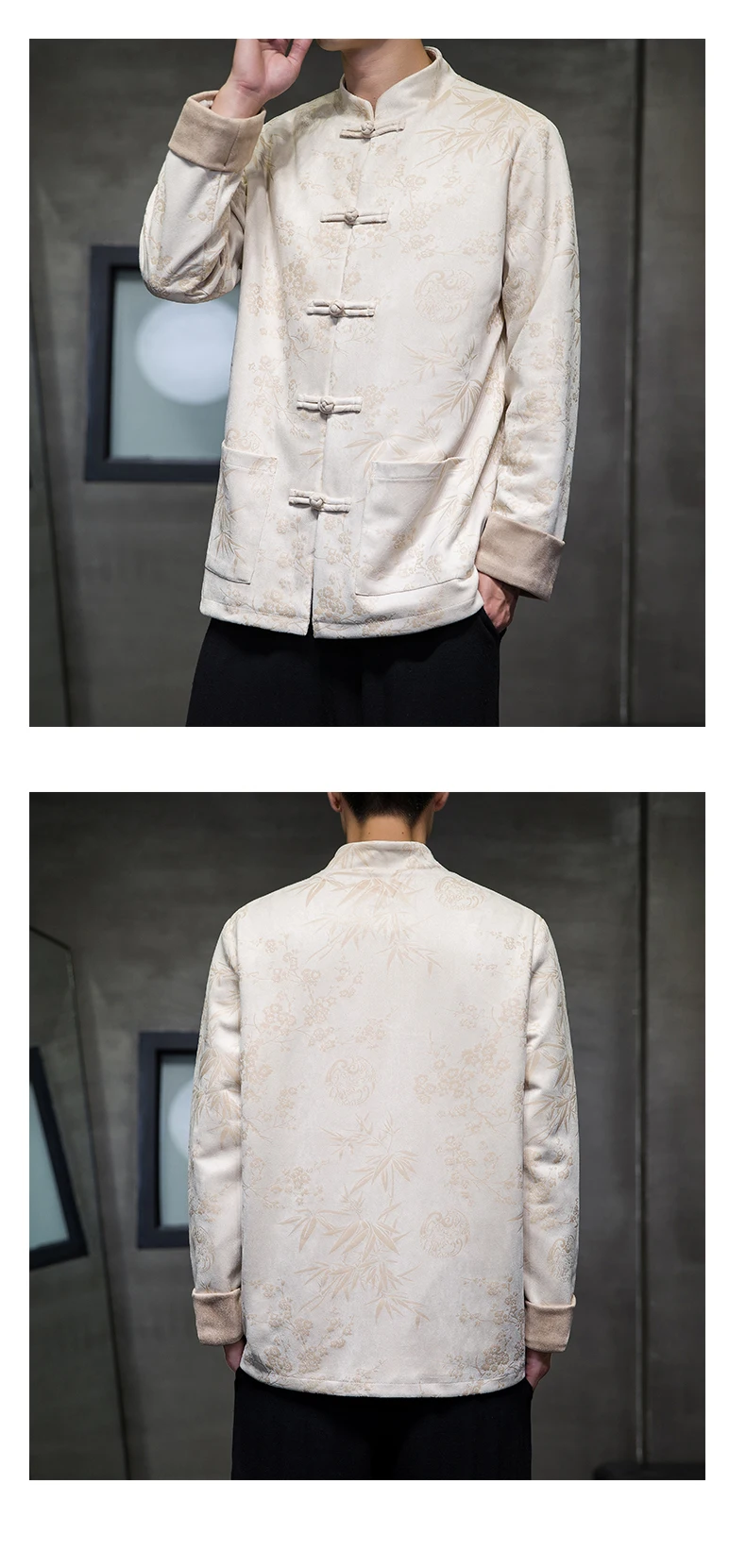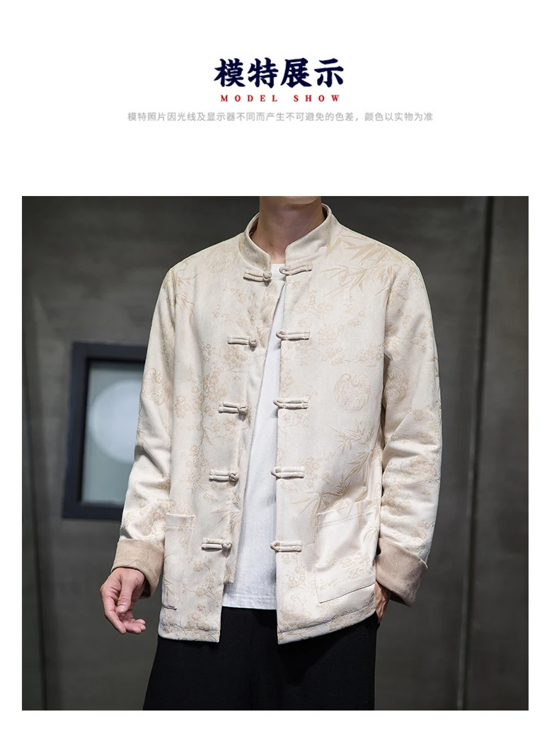 Autumn Winter Jackets for Men Velvet Chinese Style Retro Disc Buckle Jackets Man Tang Suit Hanfu Coat Traditional Clothing