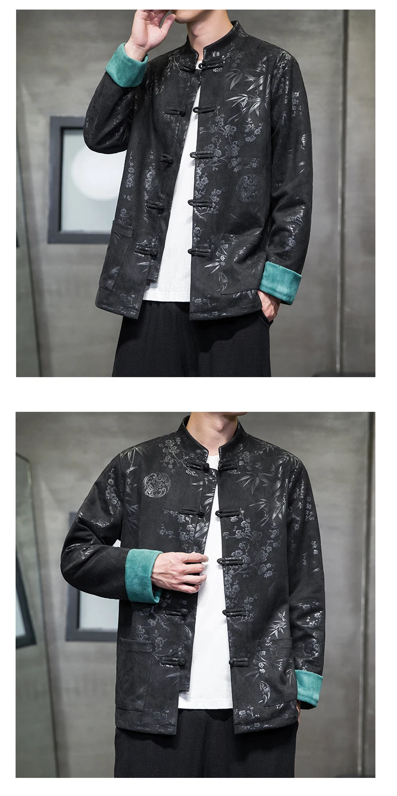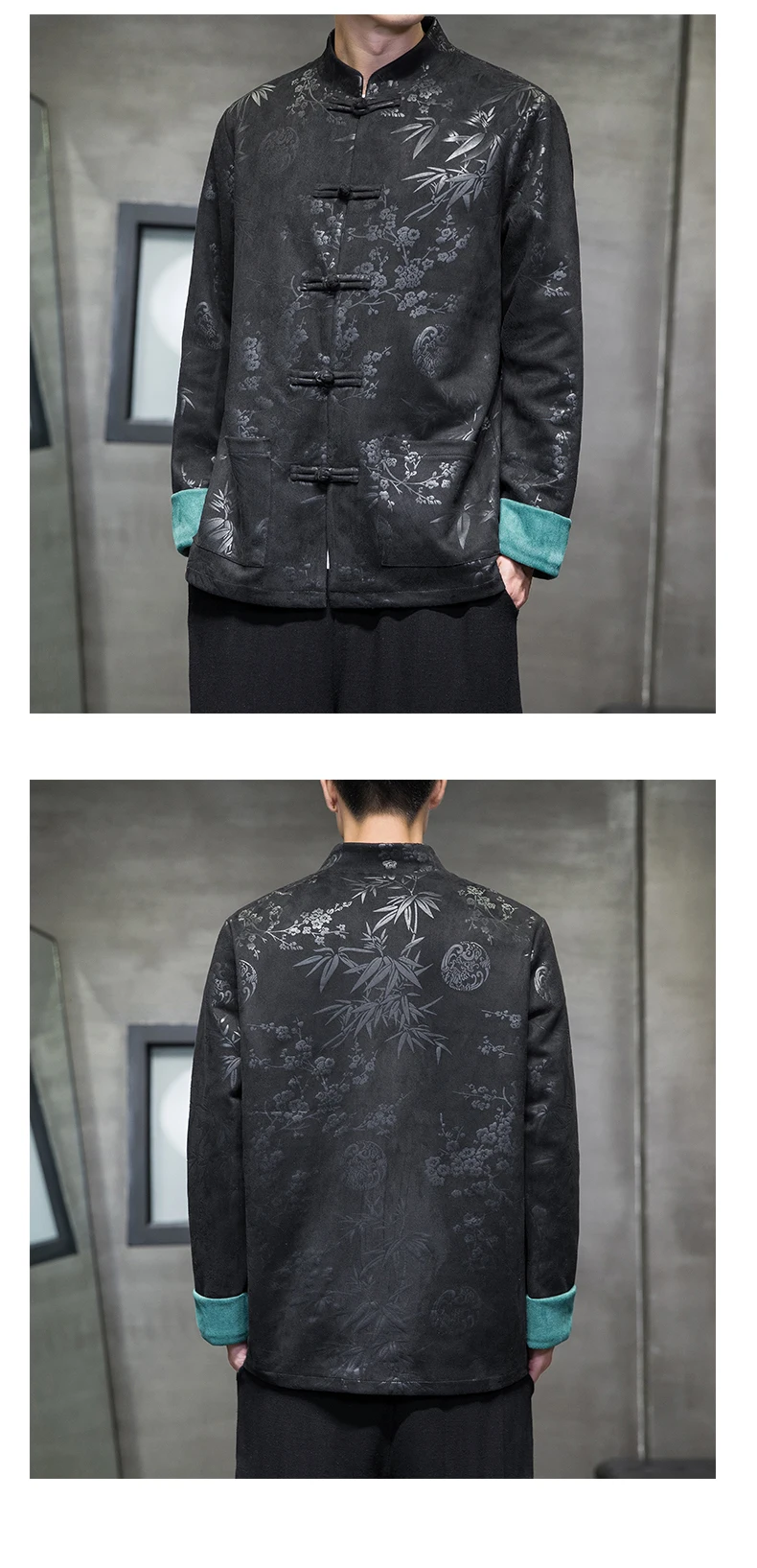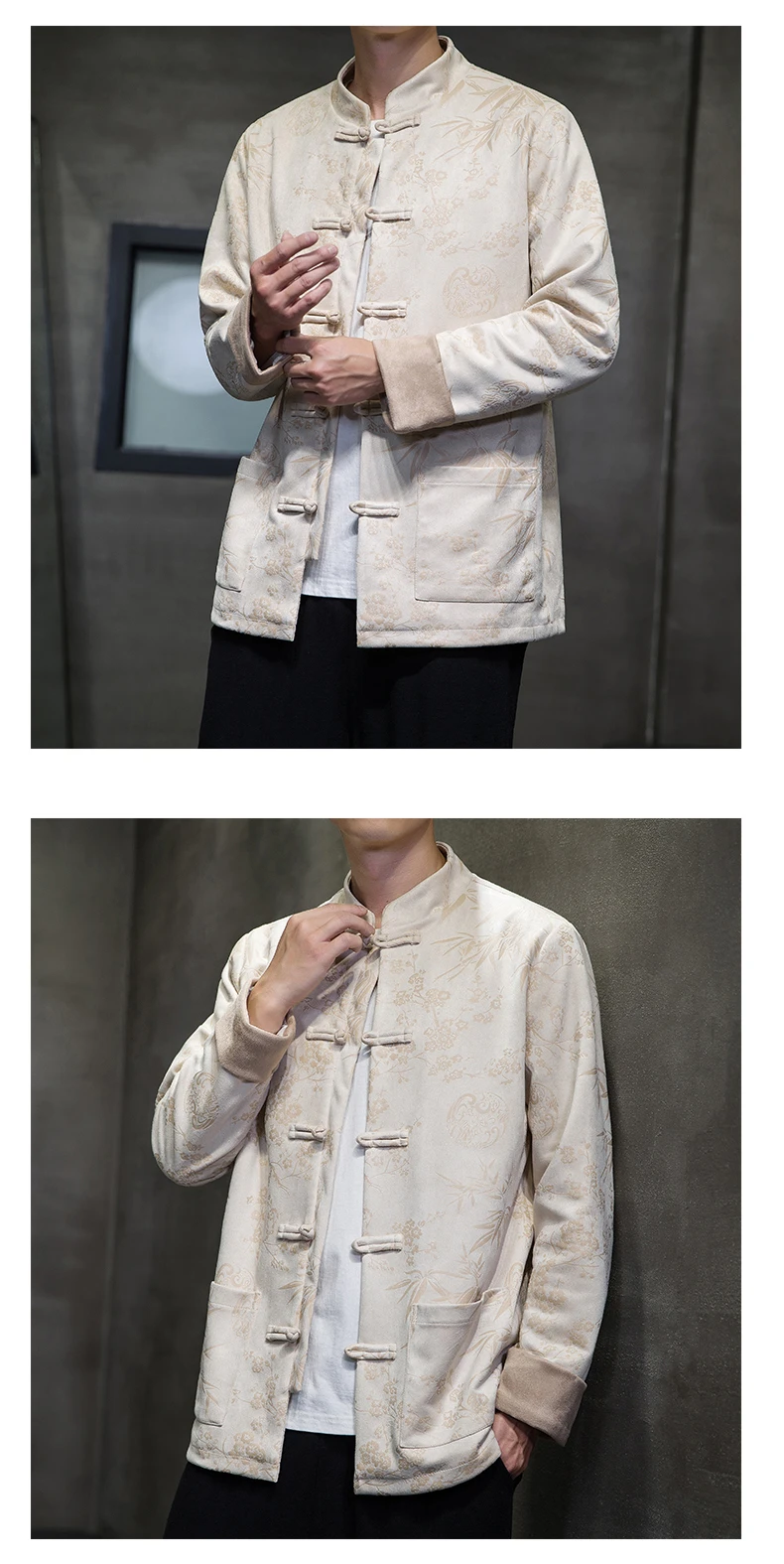 Autumn Winter Jackets for Men Velvet Chinese Style Retro Disc Buckle Jackets Man Tang Suit Hanfu Coat Traditional Clothing