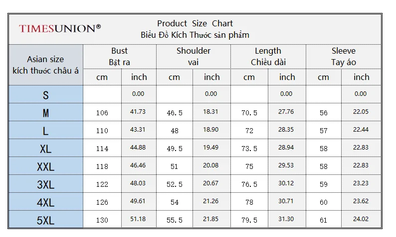 Asian size: M, L, XL,XXL, 3XL, 4XL, 5XL;