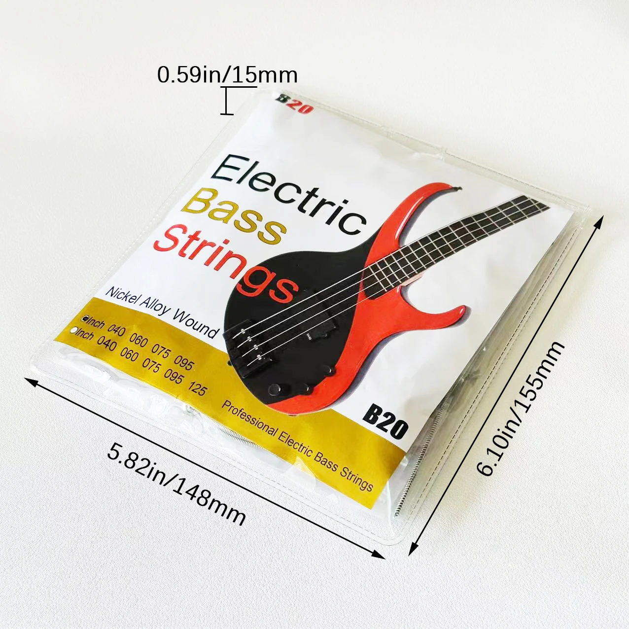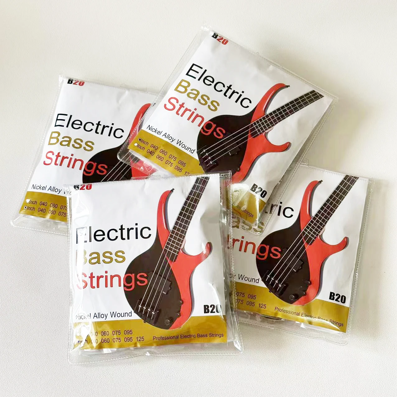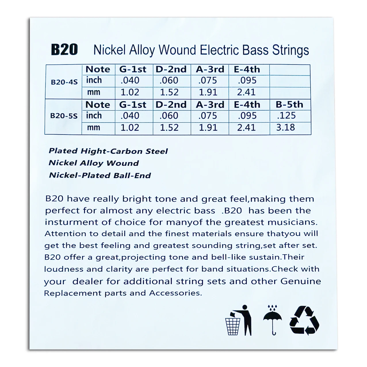 B20 Electric Bass Guitar Strings Set - Nickel Alloy Wound - Plated High-carbon Steel - Nickel-Plated Ball-End - Long Scale, Light ( .040-.095 / .040-.125 )