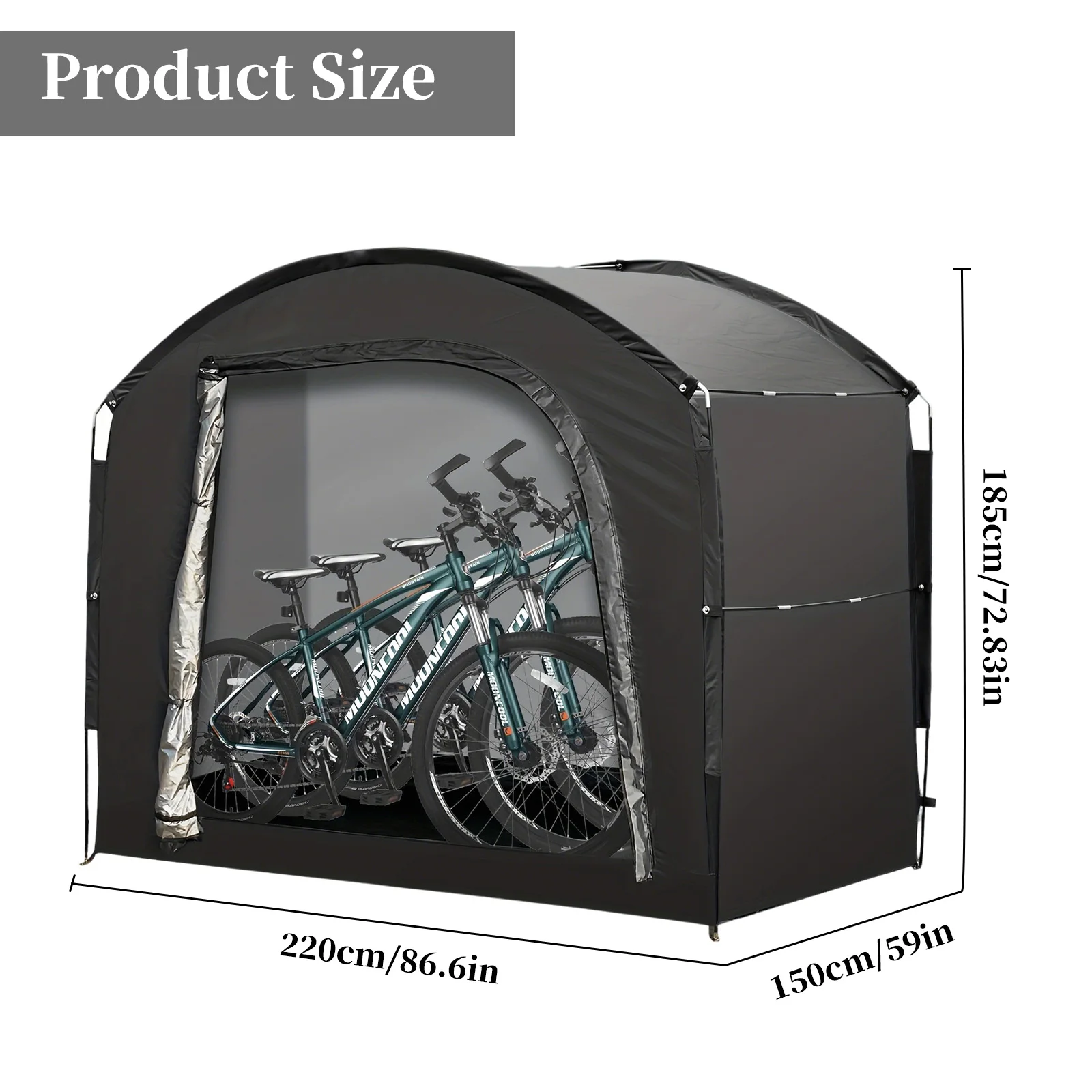 Large Capacity Space: The bicycle tent measures 220 x 150x 185 cm and can accommodate up to two bicycles. This generous size not only ensures safe storage of bicycles, but also provides enough space for additional equipment or other items.
