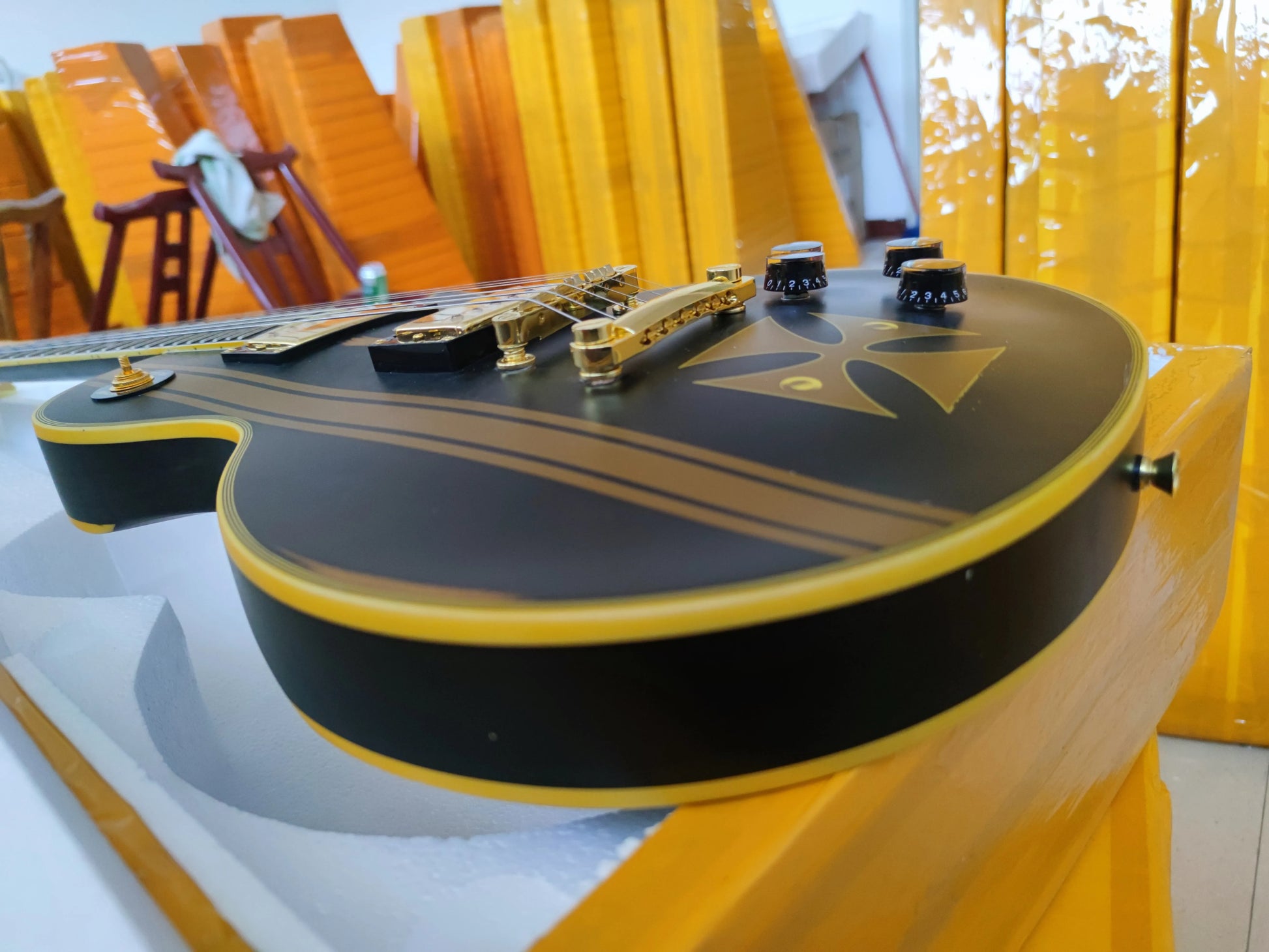 Matte Black Iron Cross Relic Electric Guitar