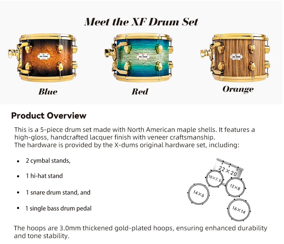 PD XF Series Acoustic Drum Kit with Maple Drum Chamber