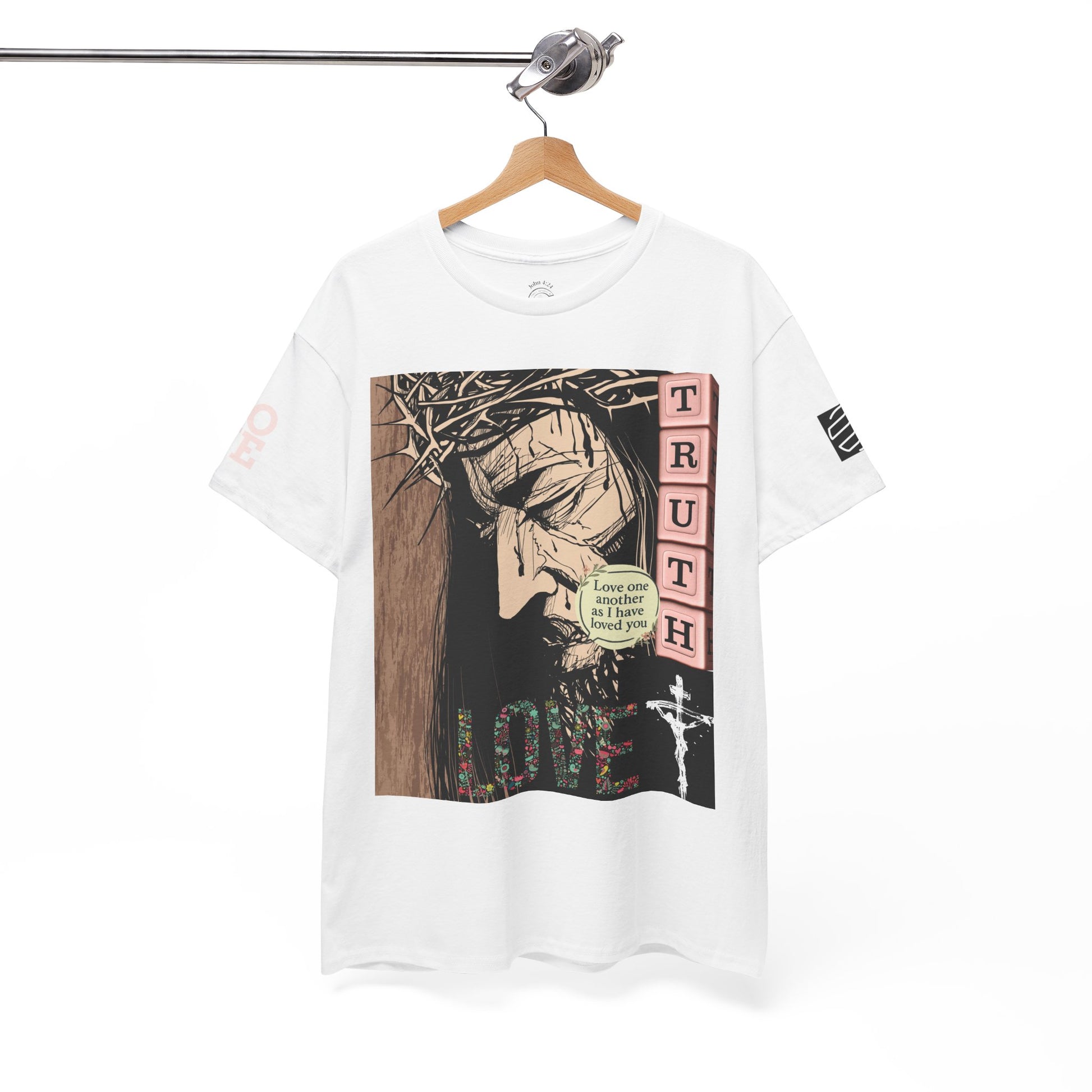 Christian Inspirational Tee, Unisex Heavy Cotton Shirt, Love and Truth Graphic T-Shirt, Faith-Based Apparel