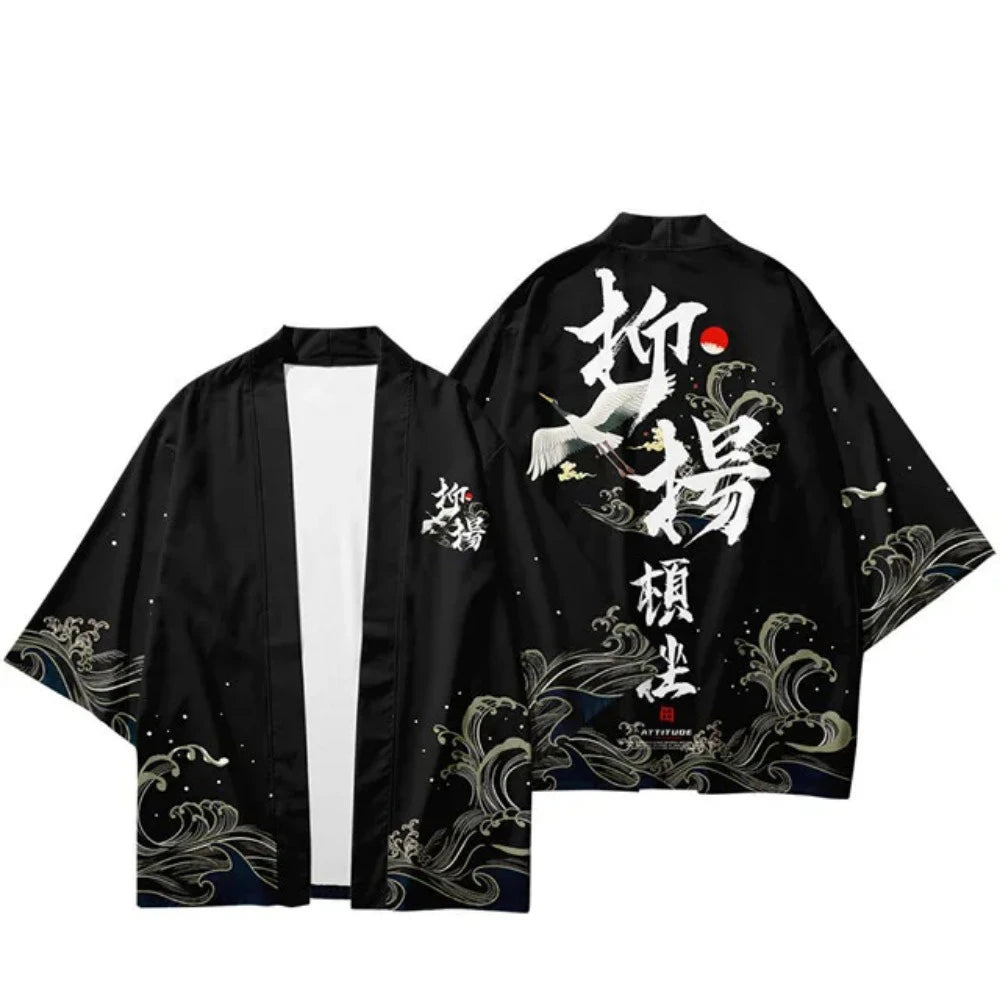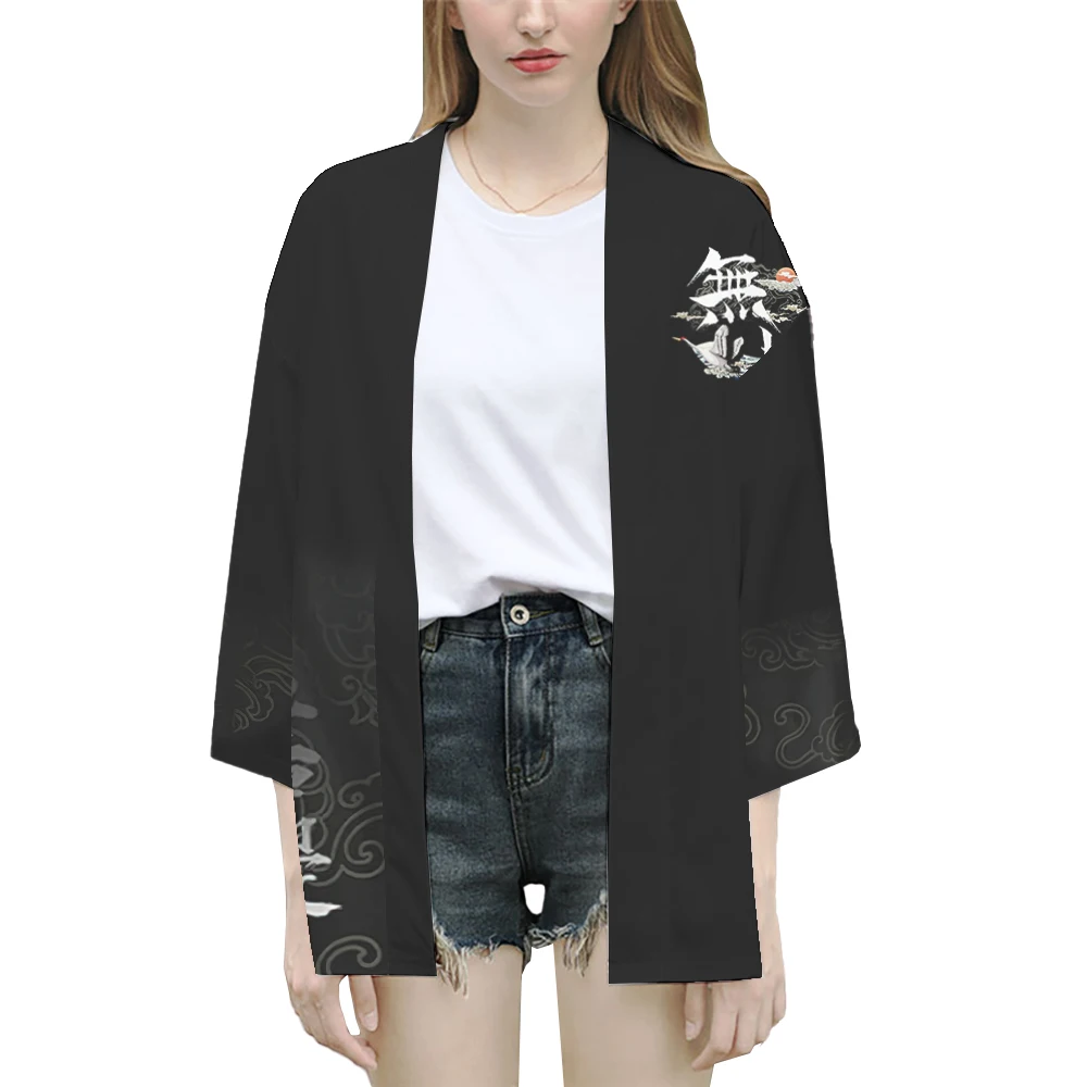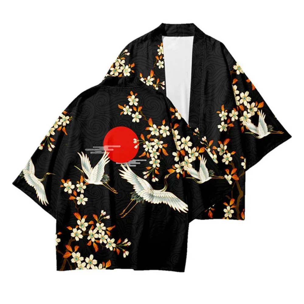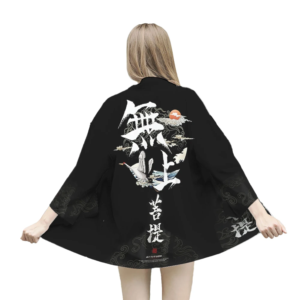 Crane & Chinese Character Traditional Kimono Japanese Men And Women Cardigan Yukata Kids Summer New Trendy Beach Wear Haori