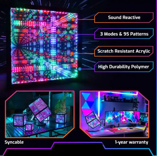Add a touch of sci-fi magic to your space with the Space Time Tunnel Mirror Colorful Cube Infinite Extension Atmosphere Lamp and let the infinite light show captivate your senses!