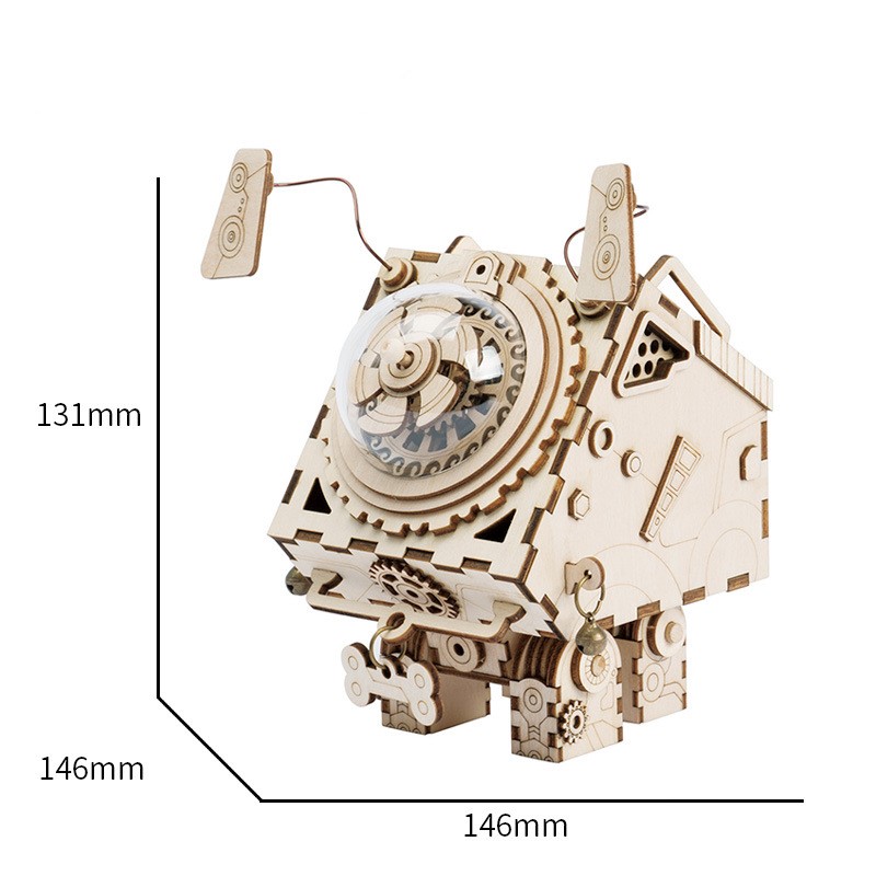 With a total of 221 parts, this intricate assembly project promises hours of engaging fun. Once completed, the music box measures 150x92x185mm, making it a charming addition to any room or a delightful keepsake. Each piece is crafted from high-quality wood, ensuring durability and a beautiful finish that enhances any decor.