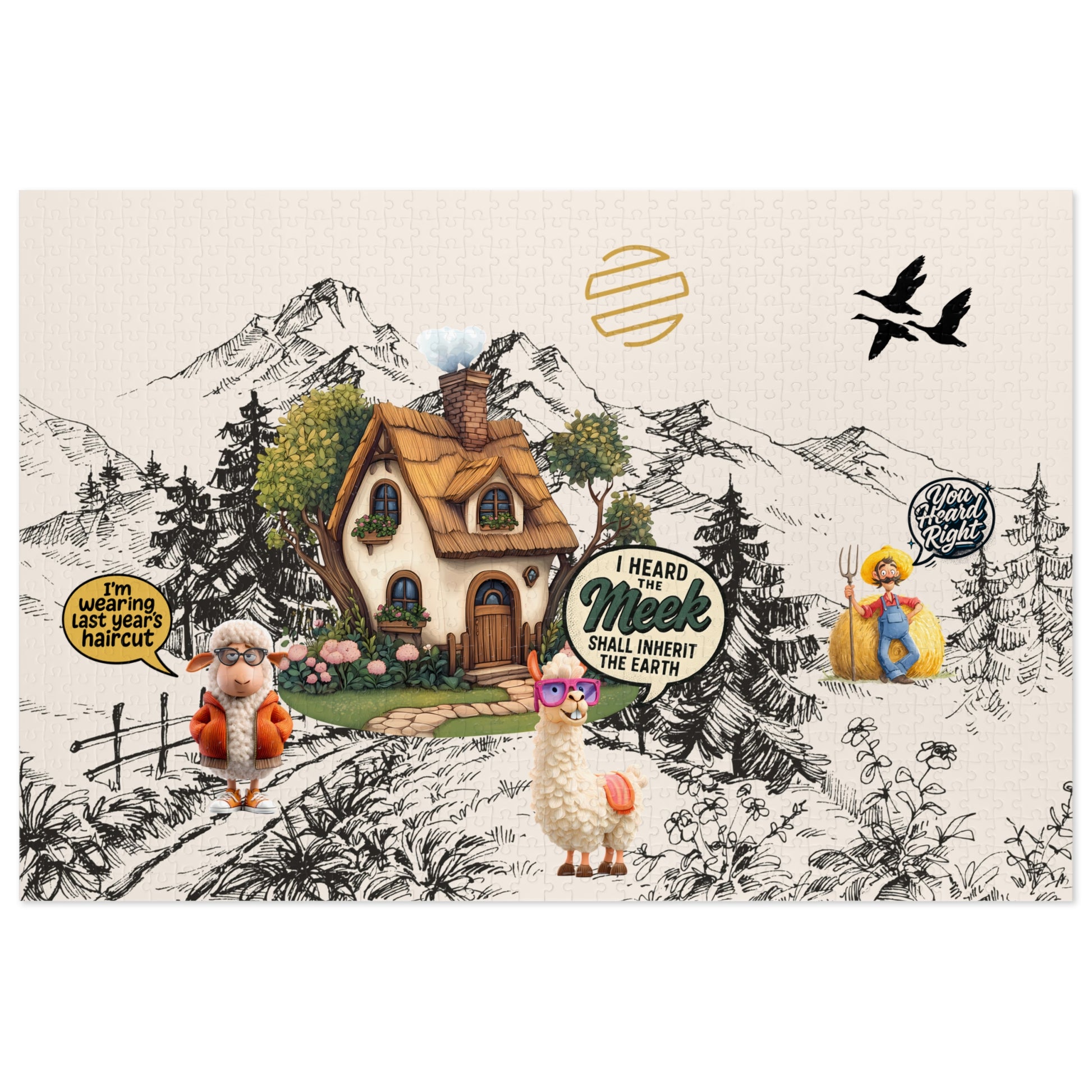 Earth Countryside Cottage Jigsaw Puzzle with Tin — Whimsical Farm Animals & Mountains (Includes Tin)