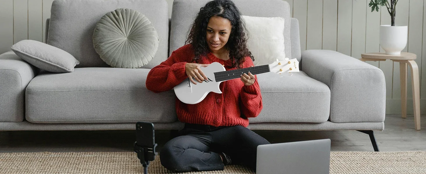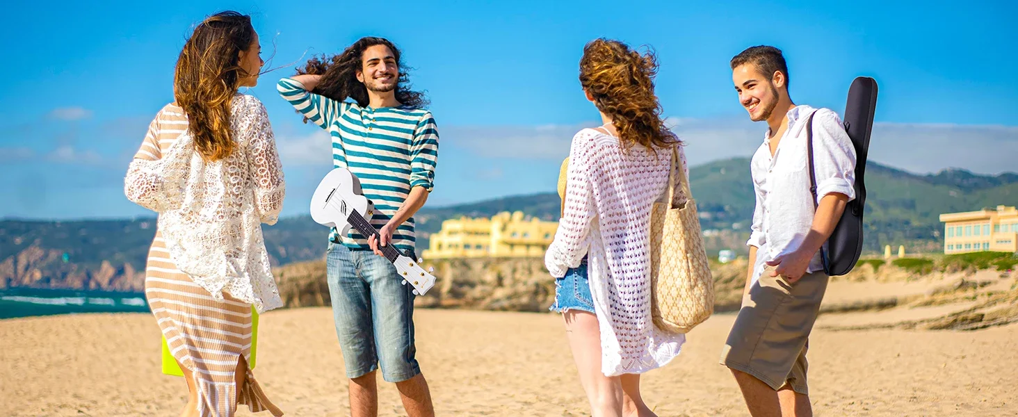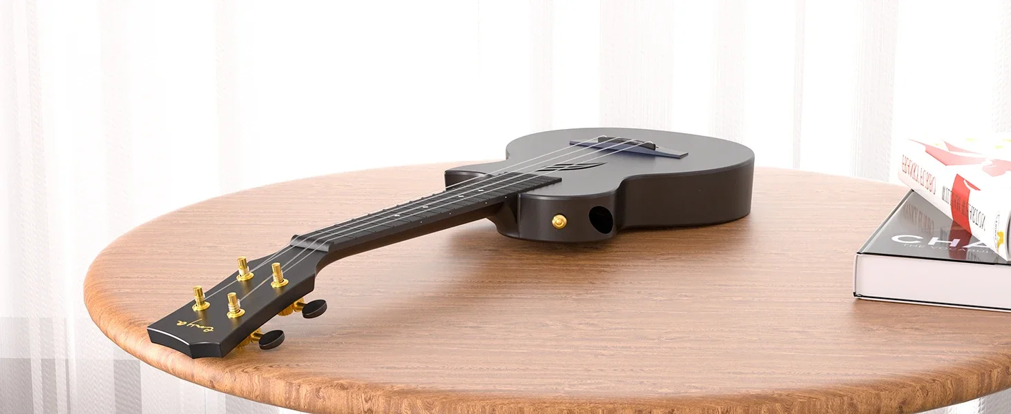 Crafted with a carbon fiber construction and an innovative sound-hole configuration, this ukulele boasts a strikingly vibrant tone. Its ergonomic design, featuring a sleek and slim profile, a comfortable and enjoyable playing experience.
