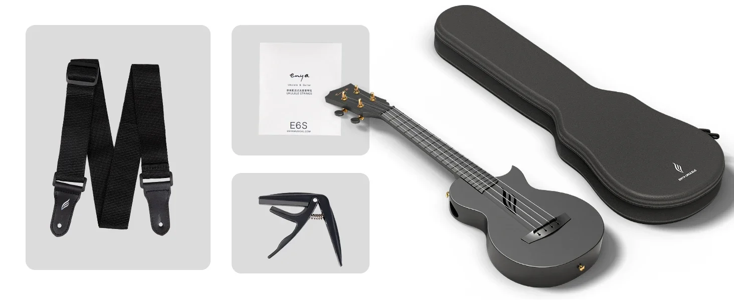 Enya Concert Ukulele Nova U 23’’ Carbon Fiber Travel Ukulele with Beginner Kit Includes Online Lessons