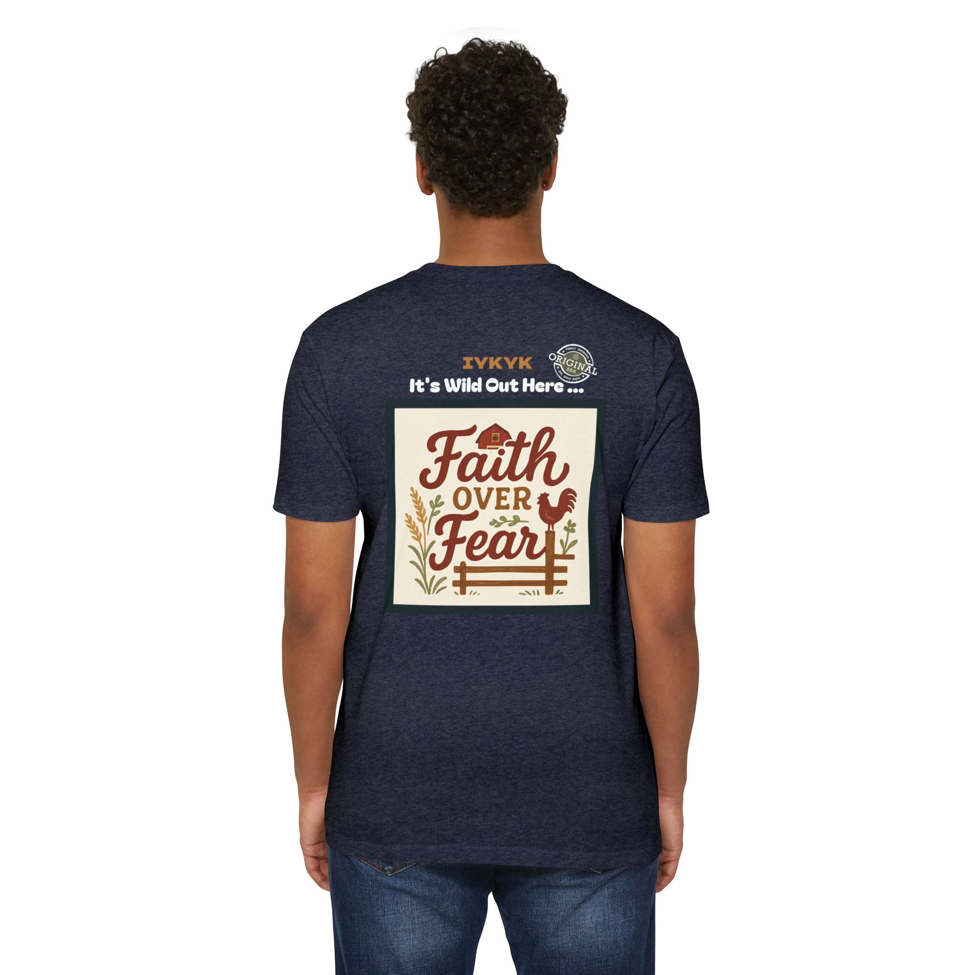 This vintage-inspired tee carries a quiet, steady message: faith steadies the heart when fear creeps in. The faded cow illustration feels lived-in, like an old barn sign passed down through summers of work and prayer. Wear it to slow mornings on the porch, to church picnics, or when you want a gentle reminder to stand firm. The soft drape and light weight keep it comfortable through warm days and layered cool evenings. It settles into your rotation as the kind of shirt you reach for when you need calm and a small, steady piece of encouragement.