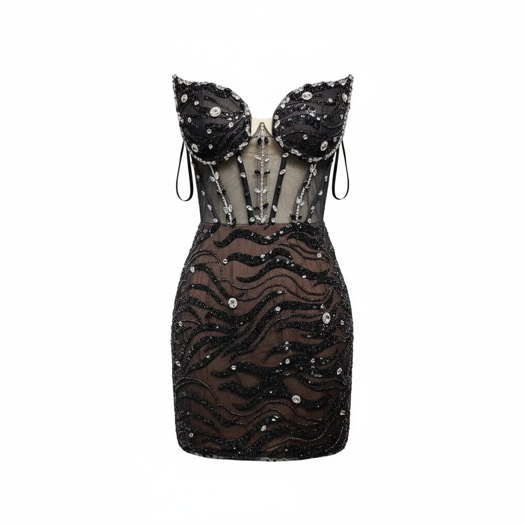 Unleash your inner goddess with our stunning Sexy Black Tube Top Off-shoulder Slimming Diamond-studded Fishbone Dress. This exquisite piece is designed to make you feel confident and alluring, perfect for any occasion where you want to turn heads.