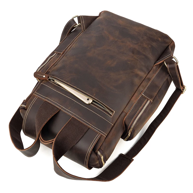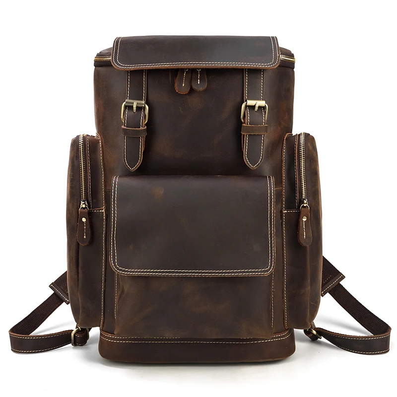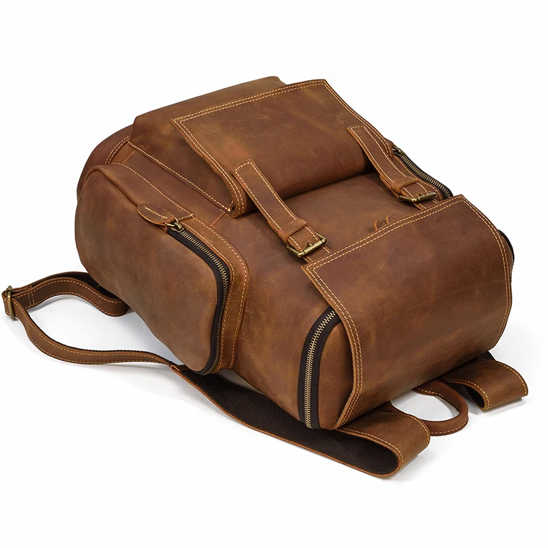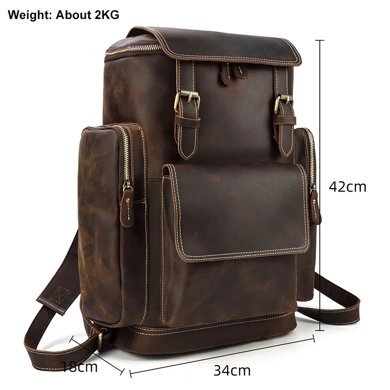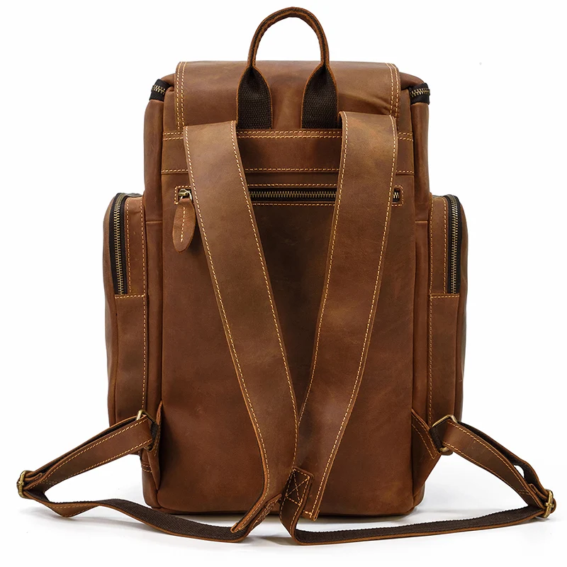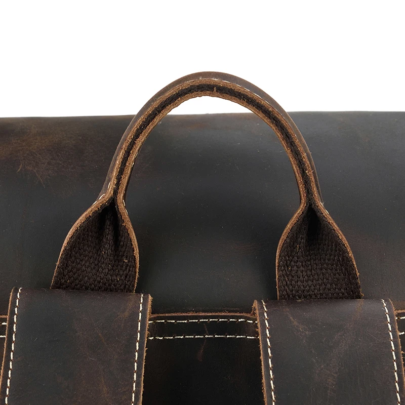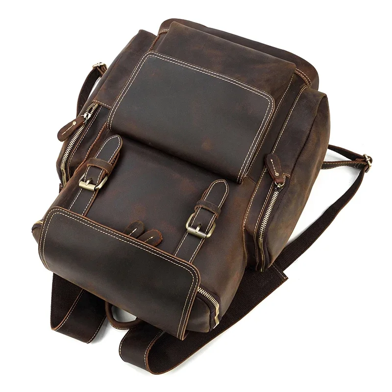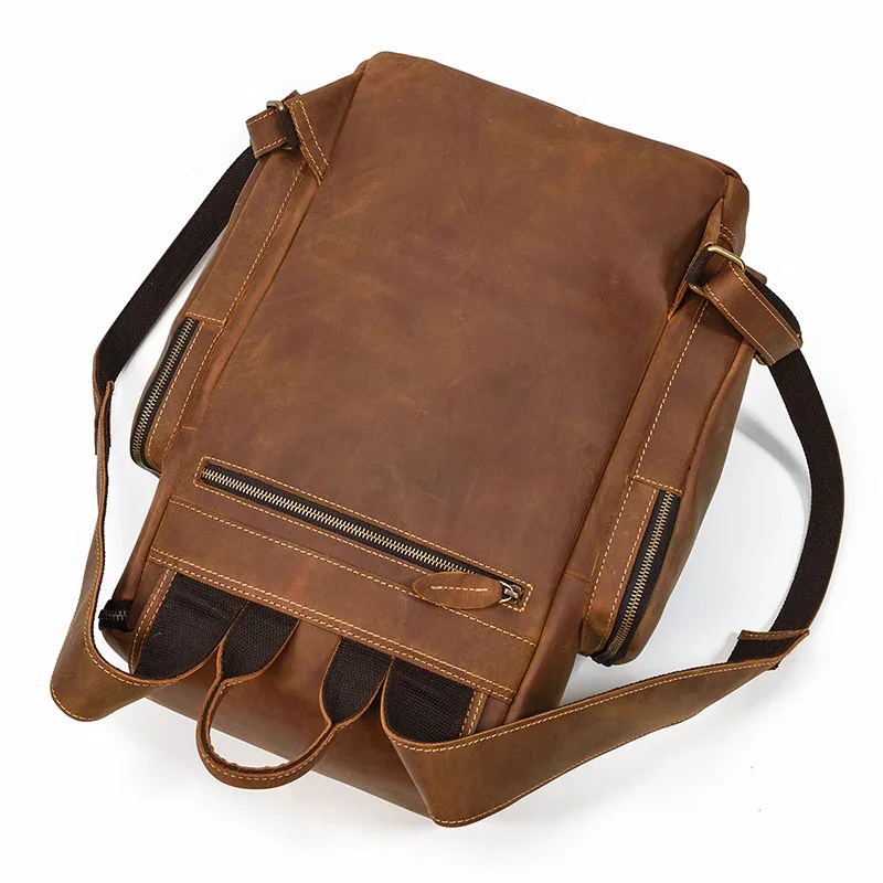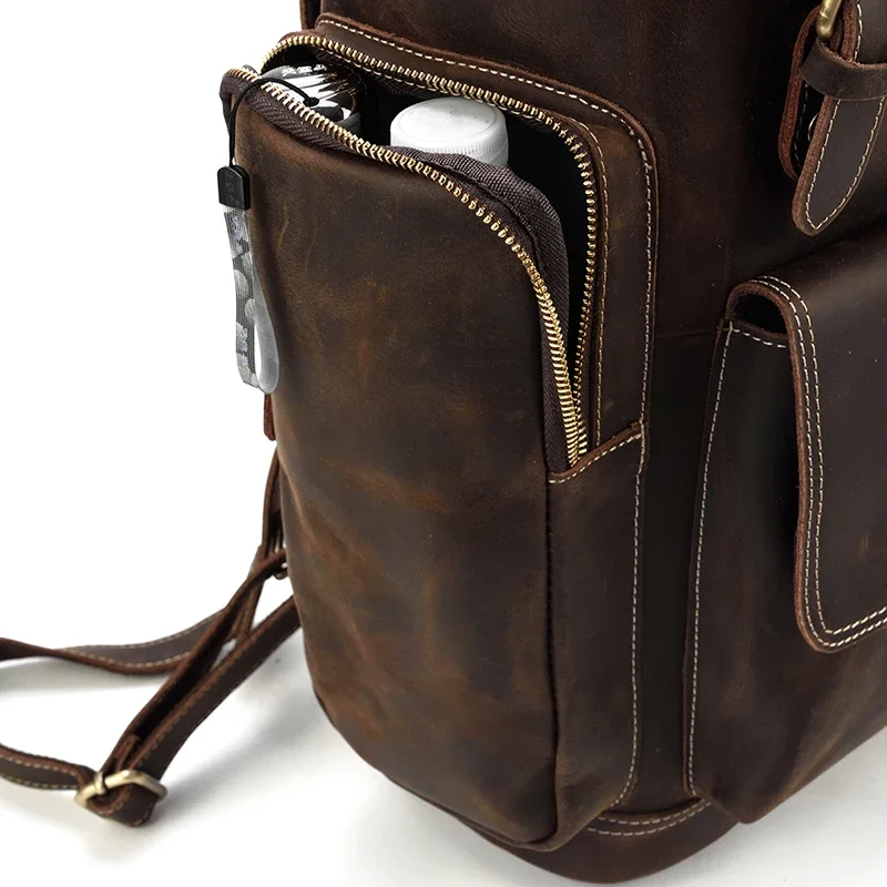 Men's High Capacity Crazy Horse Leather Laptop Backpack