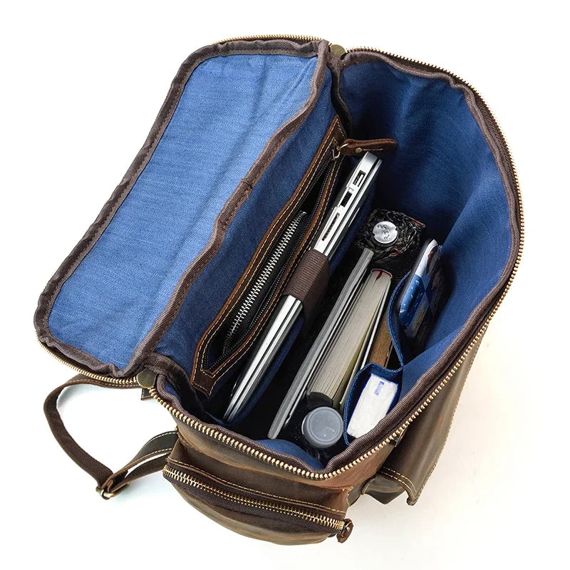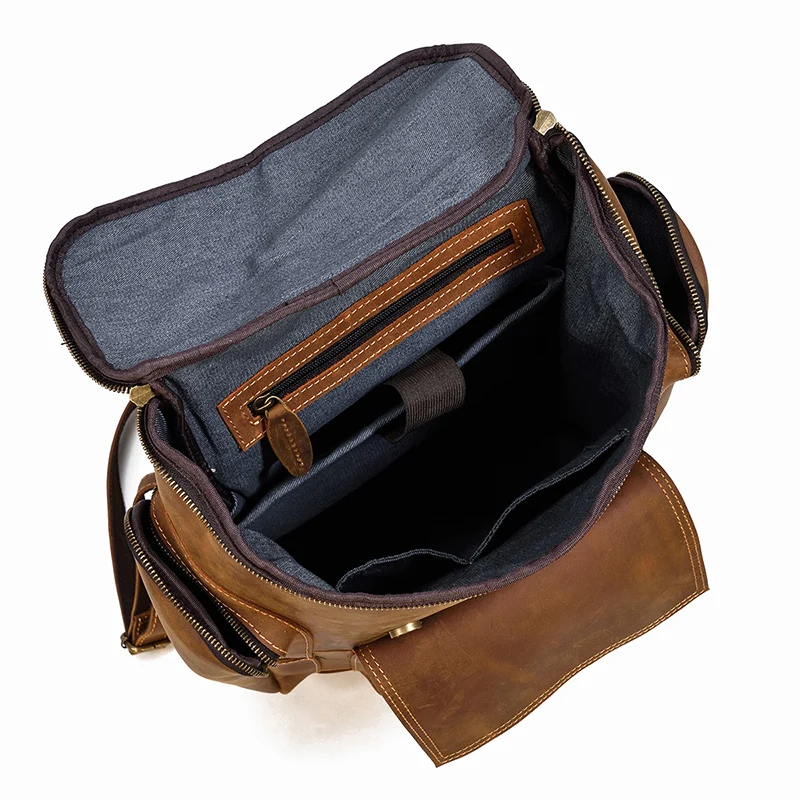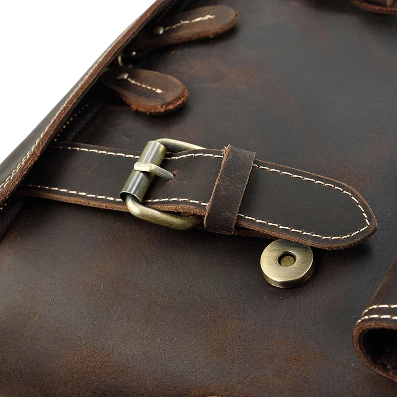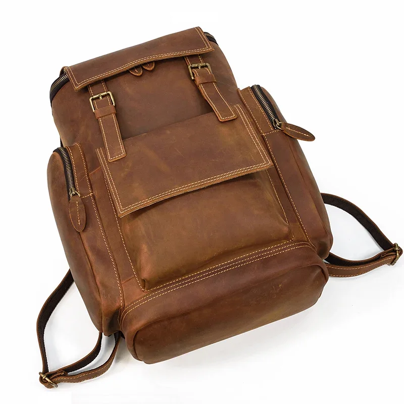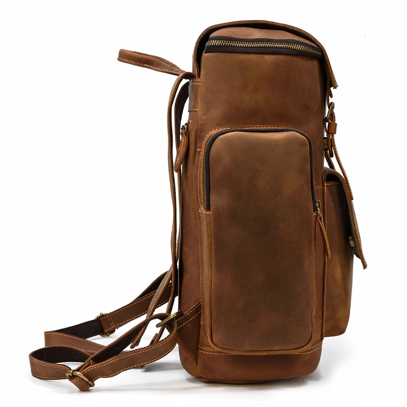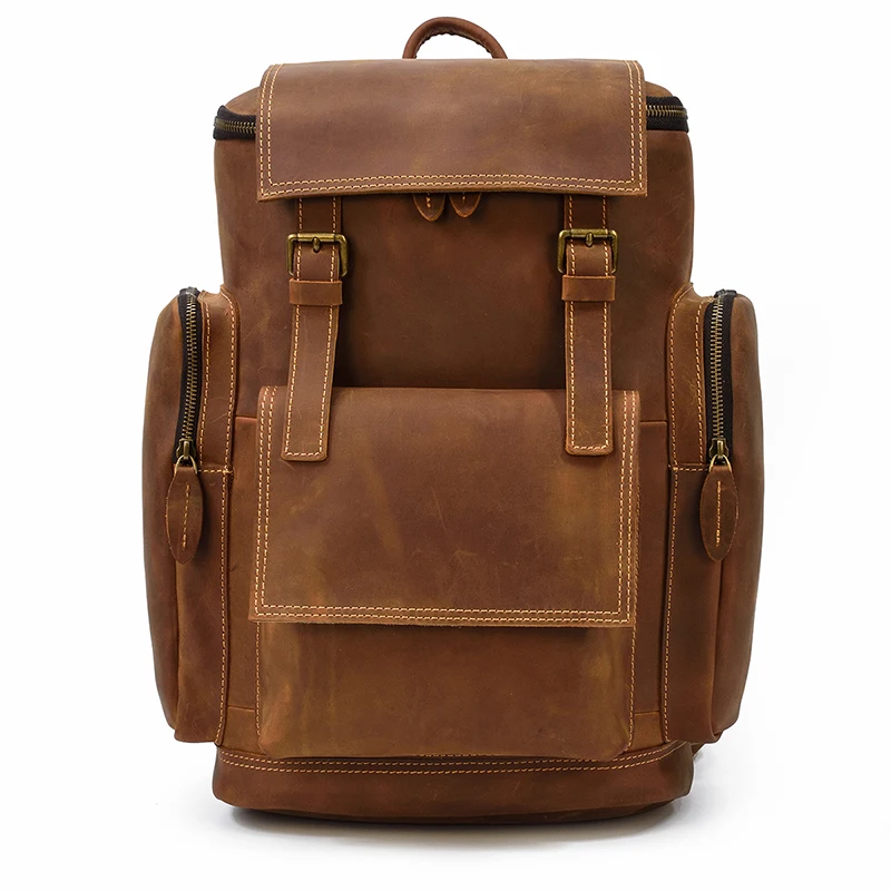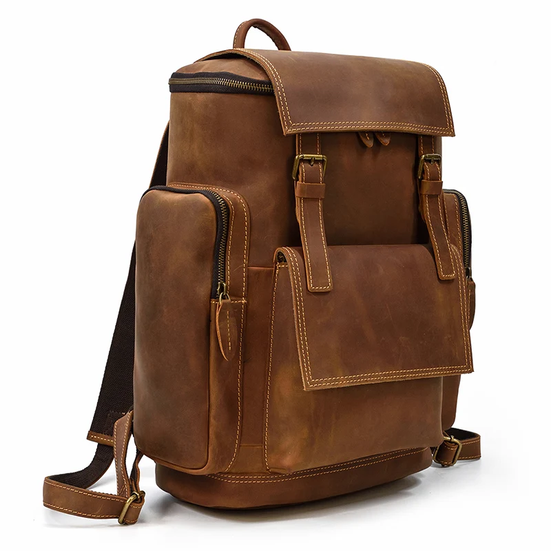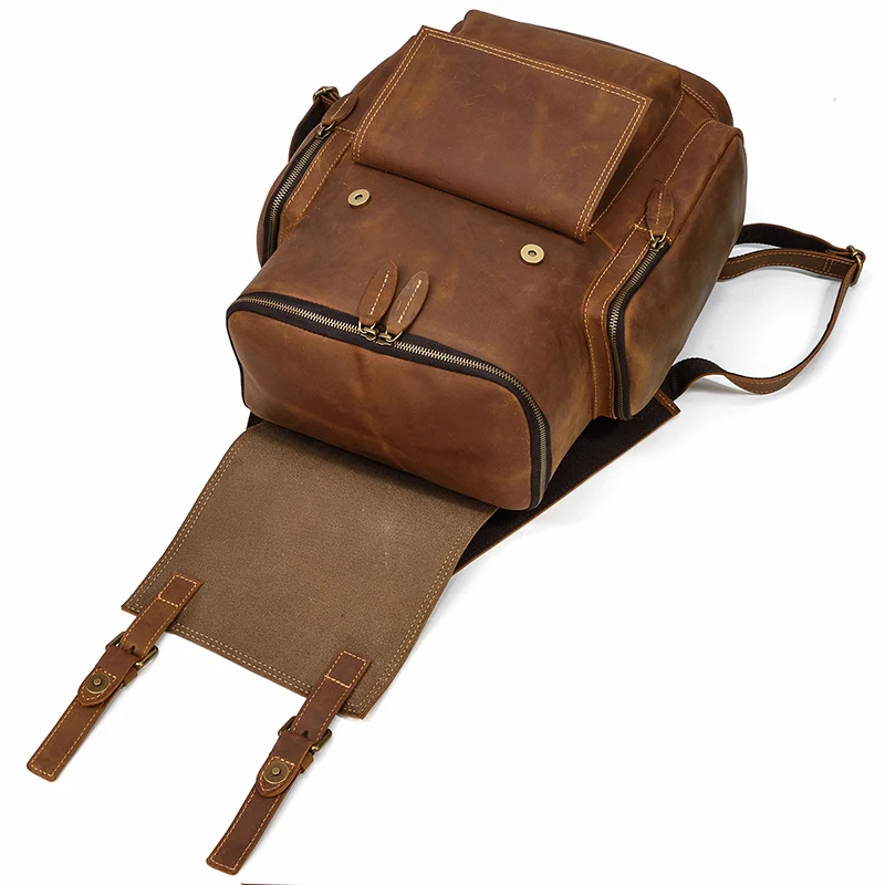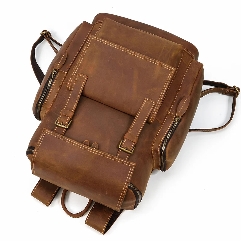 Men's High Capacity Crazy Horse Leather Laptop Backpack