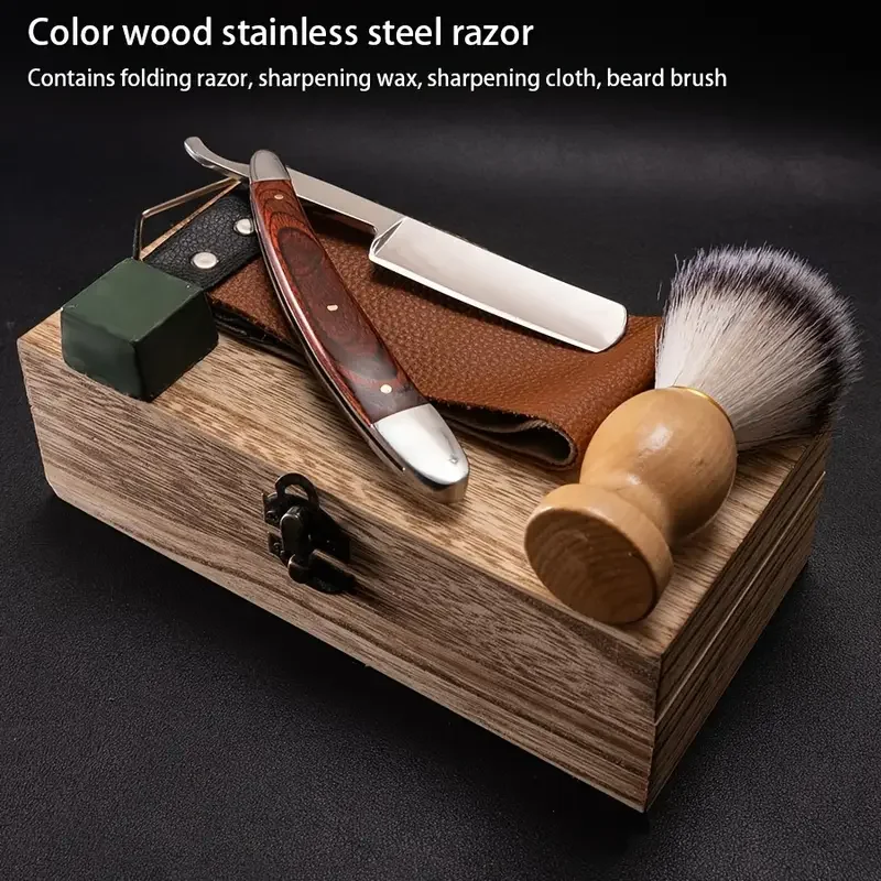 High-End Men's Shaver Straight Edge Barber Razors Set Manual Beard Shaving Care with Wiping Cloth Repair Brush Grinding Stones