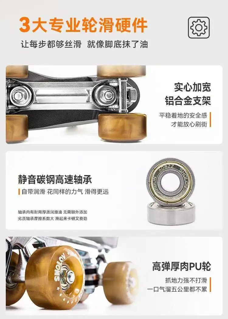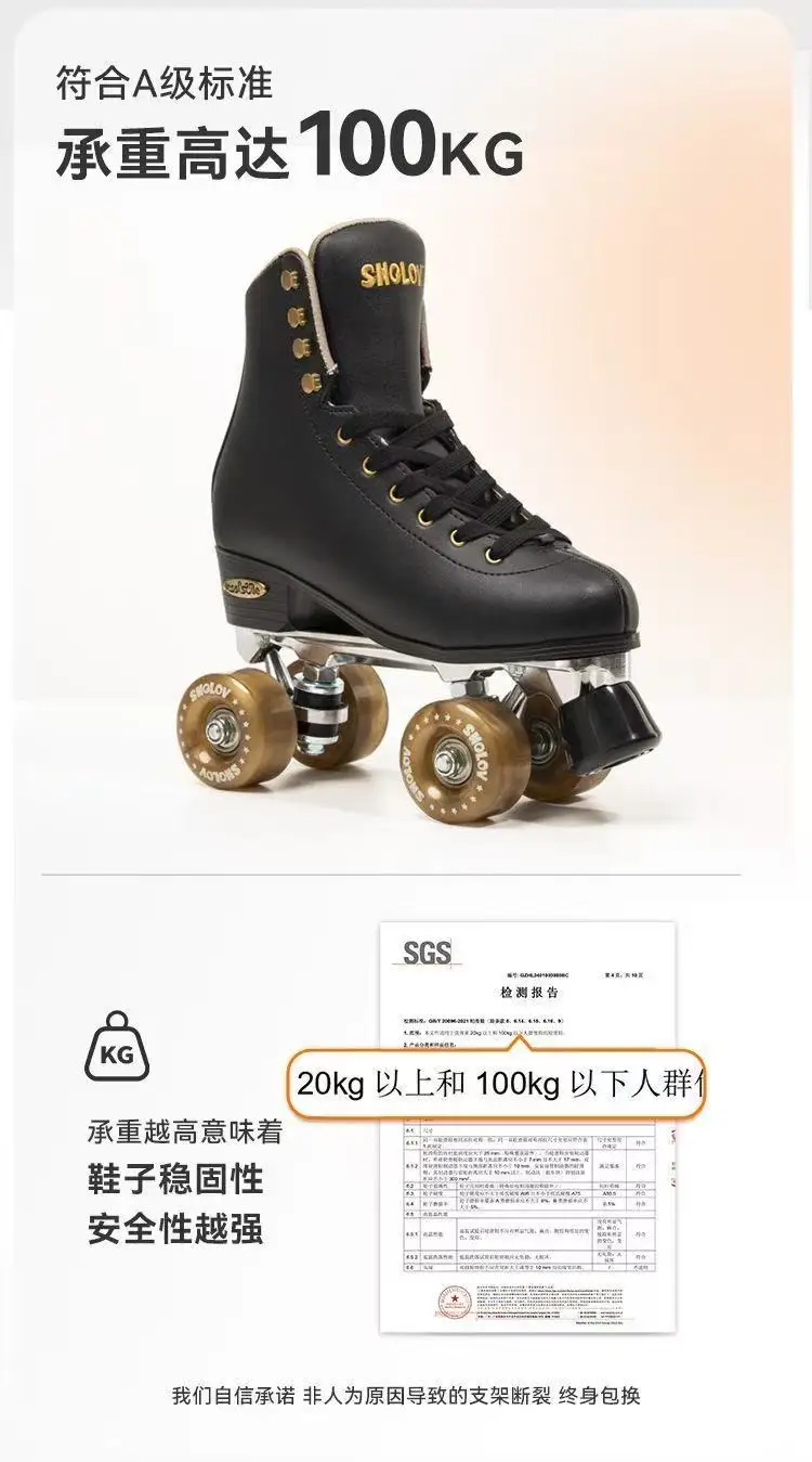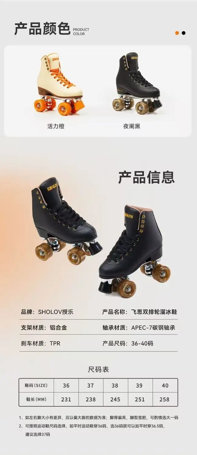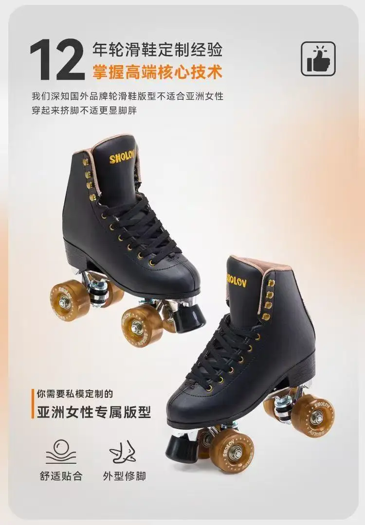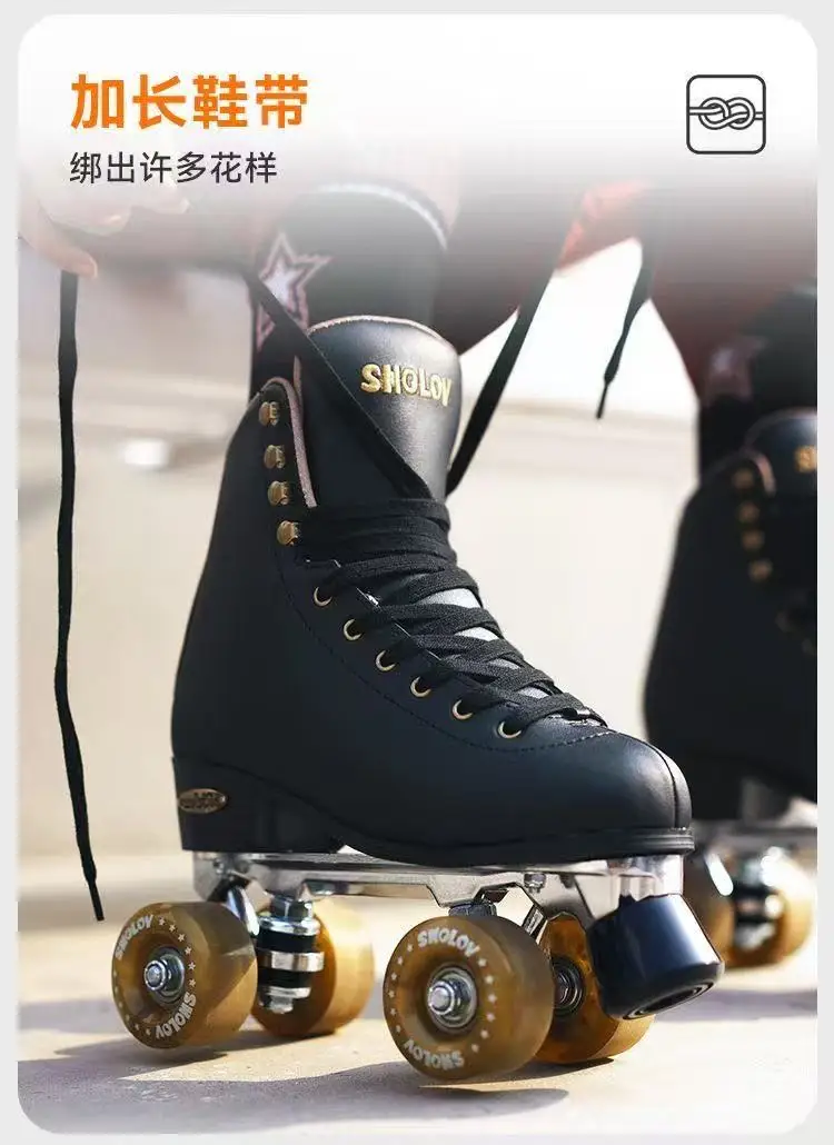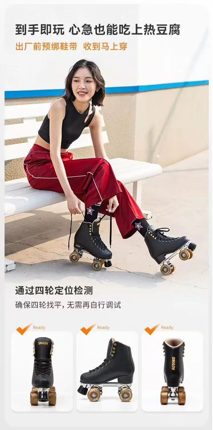Leather Quad Skates with Aluminum Alloy Brackets - [Sizes 36-39]