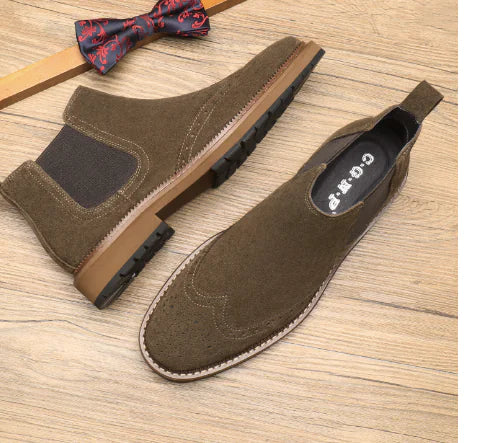 Step up your shoe game with our Original Handmade Shoes featuring Frosted Leather and crafted from premium Cowhide. These British Brogue Embossed Ankle Boots are not just footwear; they are a statement of style and sophistication for the modern man.