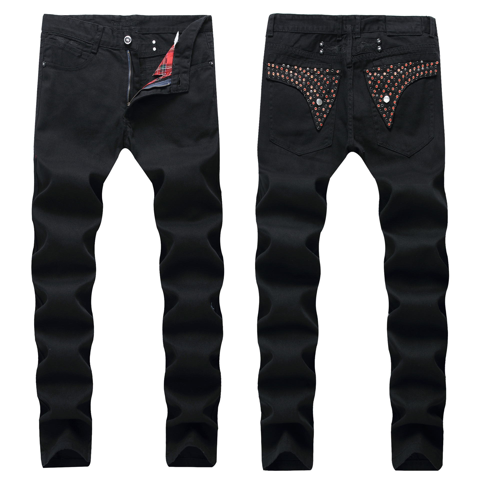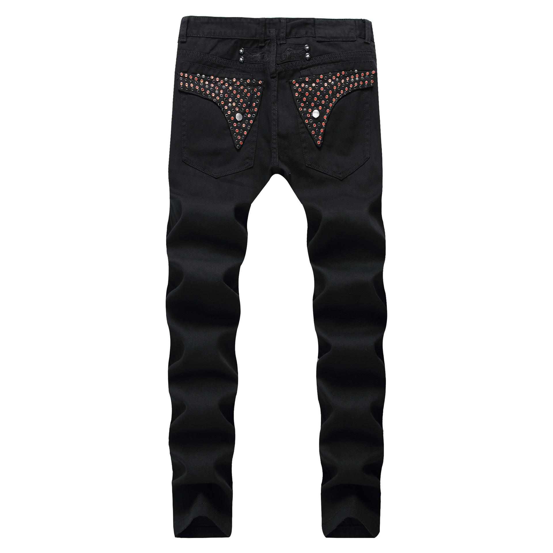 Discover the perfect blend of style and comfort with our Men's Hot Black Nail Small Straight Tube Slim Fitting Jeans. Designed for the modern man, these jeans feature a sleek straight cut that accentuates your silhouette while providing ease of movement. The unique nail bead detailing adds a touch of edginess, making these jeans a standout piece in your wardrobe.