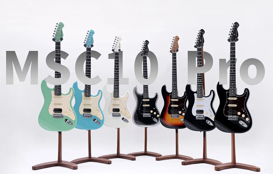 The MSC10 Pro has been designed for new guitarists who seek a more traditional guitar experience than a high-tech one. It's stylized with a classic strat-style shape, and while more colors may be available soon, the guitar is currently available in six initial glossy color finishes: black, vintage white, daphne blue, sunburst, surf green, and dark silver.