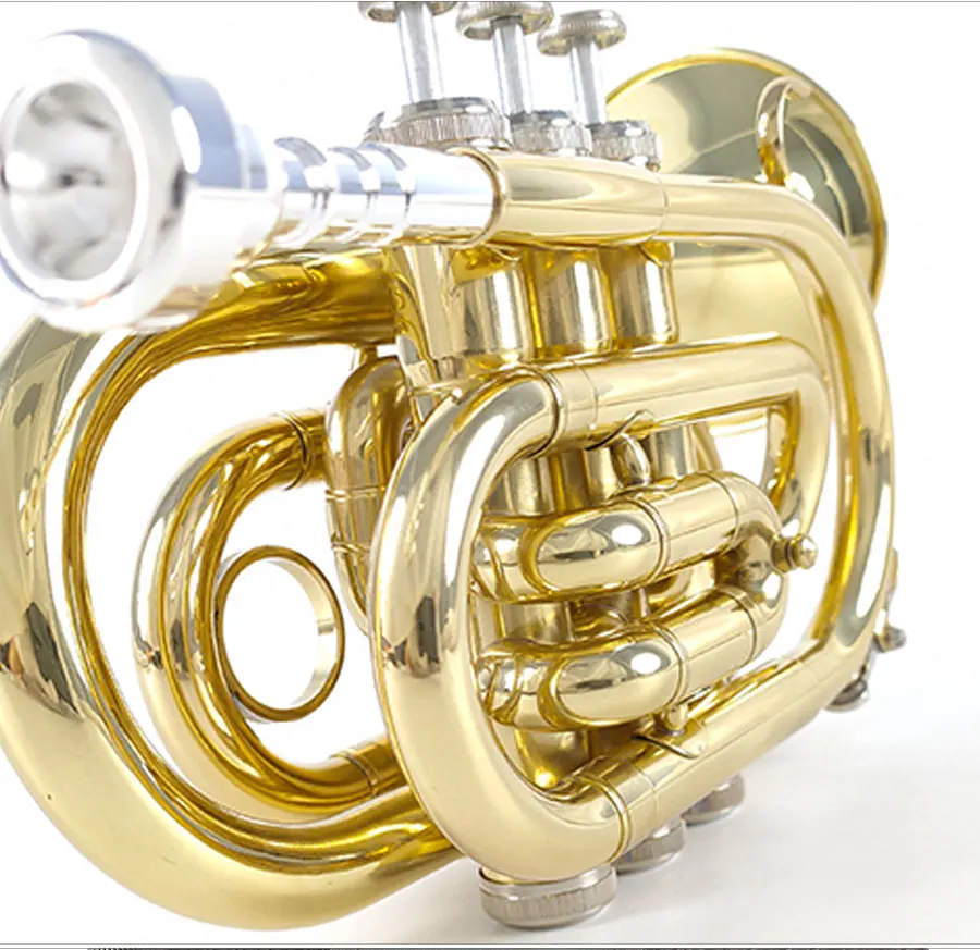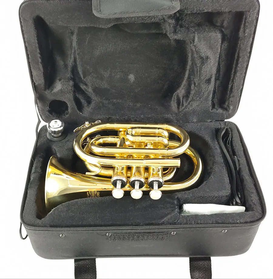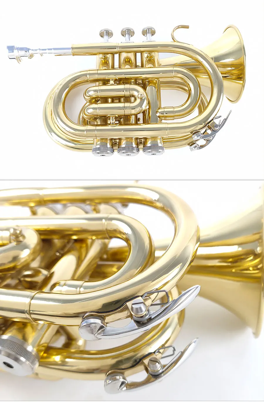 MORESKY Mini Pocket Trumpet Bb Flat Brass Wind Instrument with Mouthpiece Gloves Cleaning Cloth Carrying Case MPT-101
