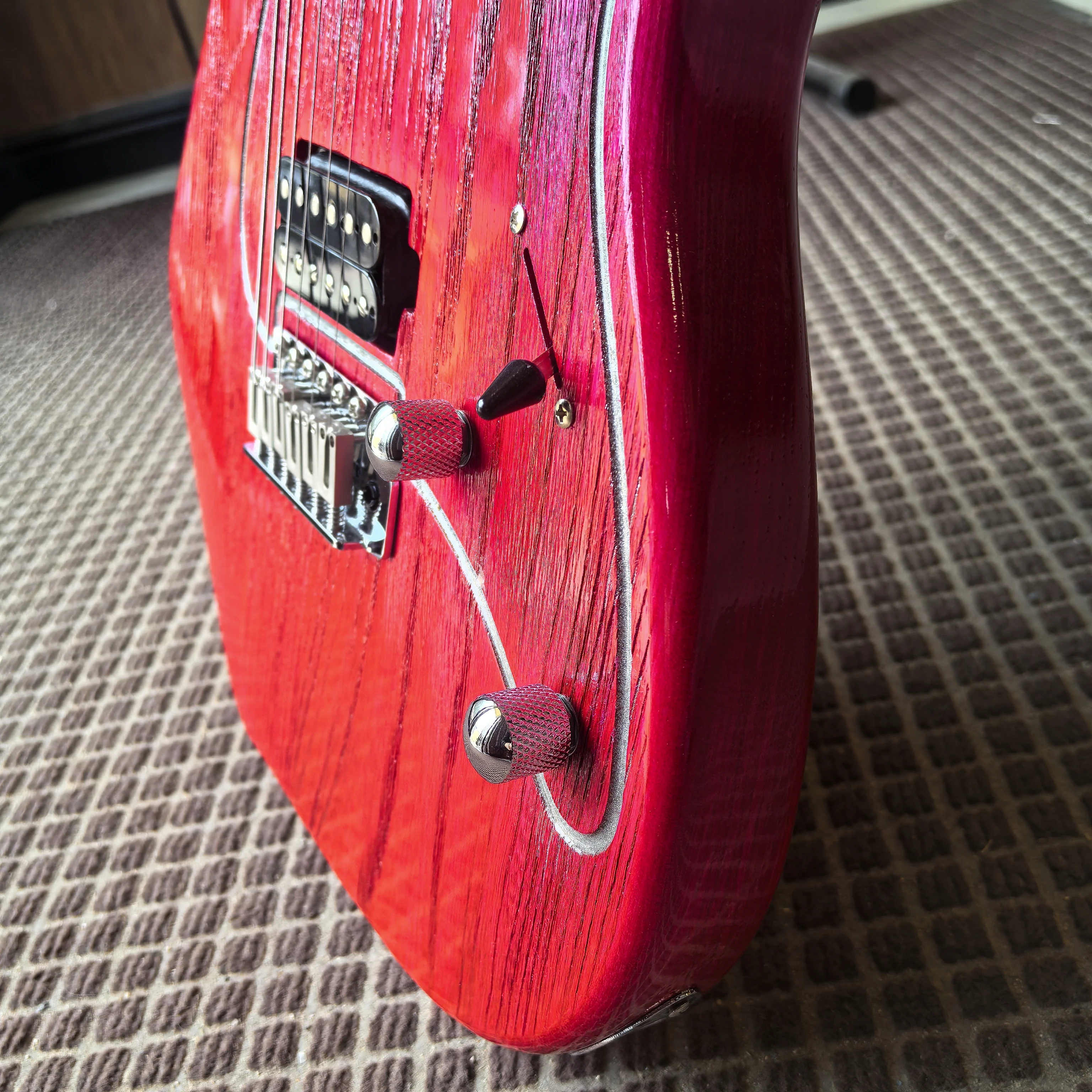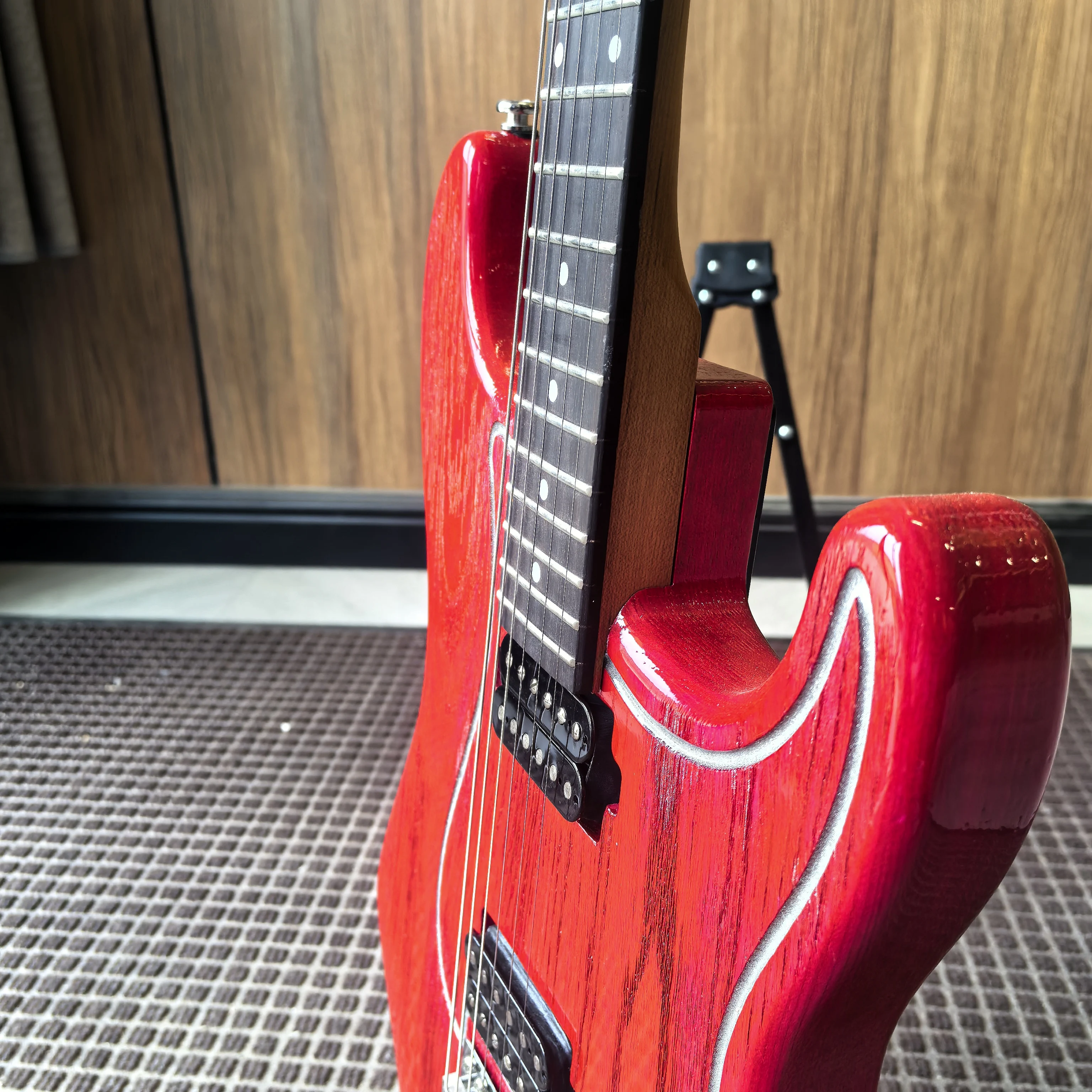 New style,Red 6-string electric guitar, with beautiful hickory wood grain, dual pickups, maple neck, in stock.22 fret.