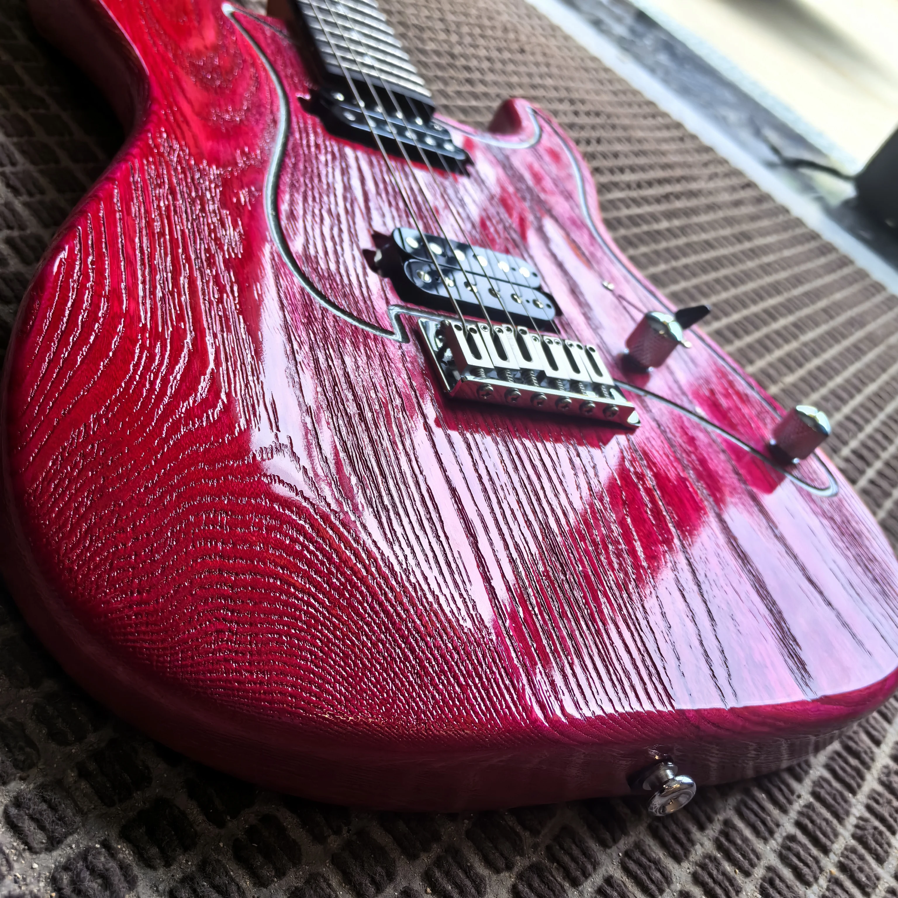 Red Hickory Wood Grain, dual pickups, 22 Fret Maple Neck 22 fret. Electric Guitar