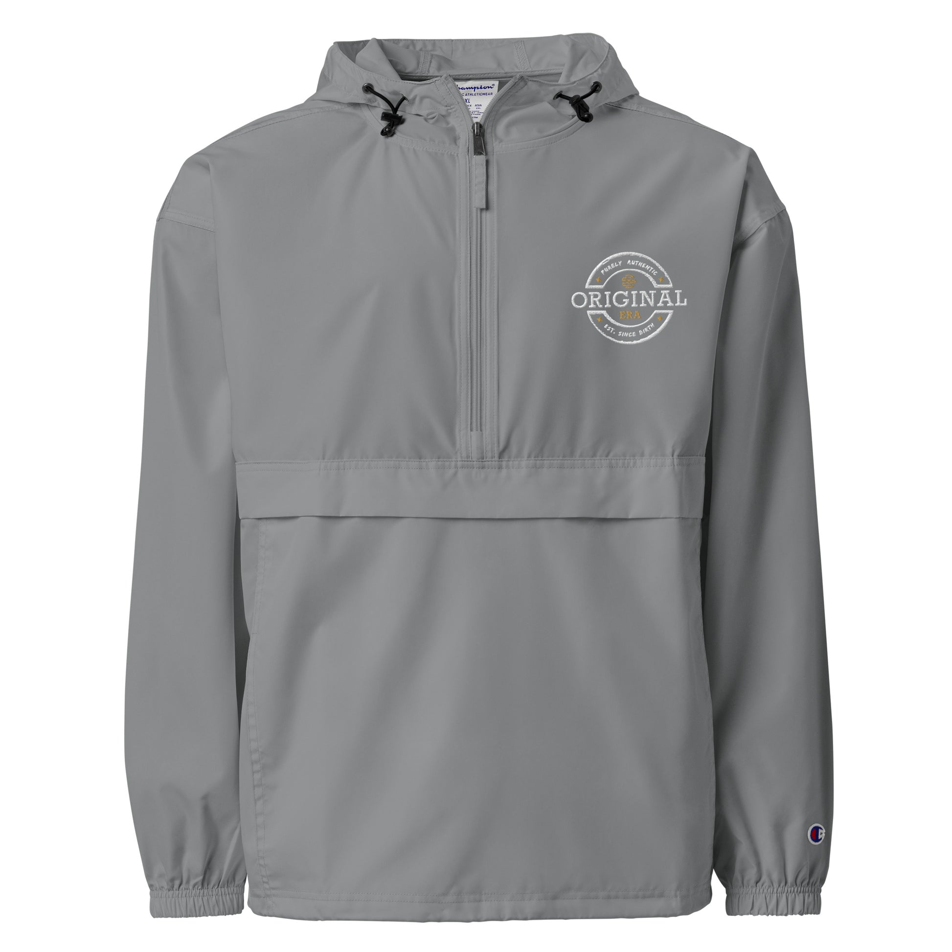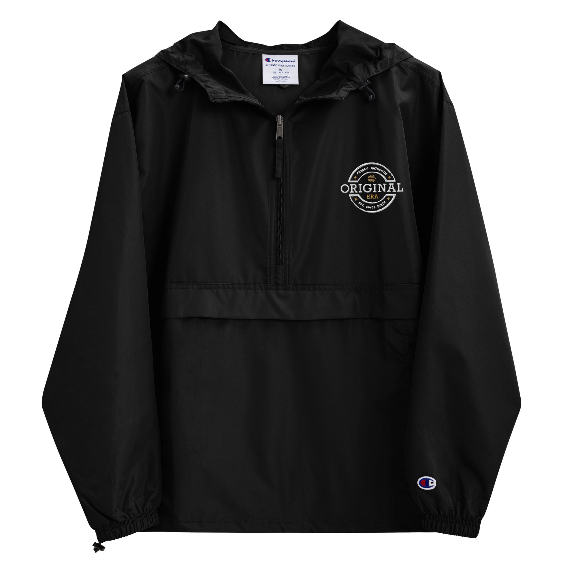 Protect yourself from the elements with this Champion packable jacket. This wind and rain resistant polyester jacket with a detailed embroidery design has a practical hood, front kangaroo pocket, and zipped pouch pocket which you can pull out and use to scrunch the jacket into for convenient storage.