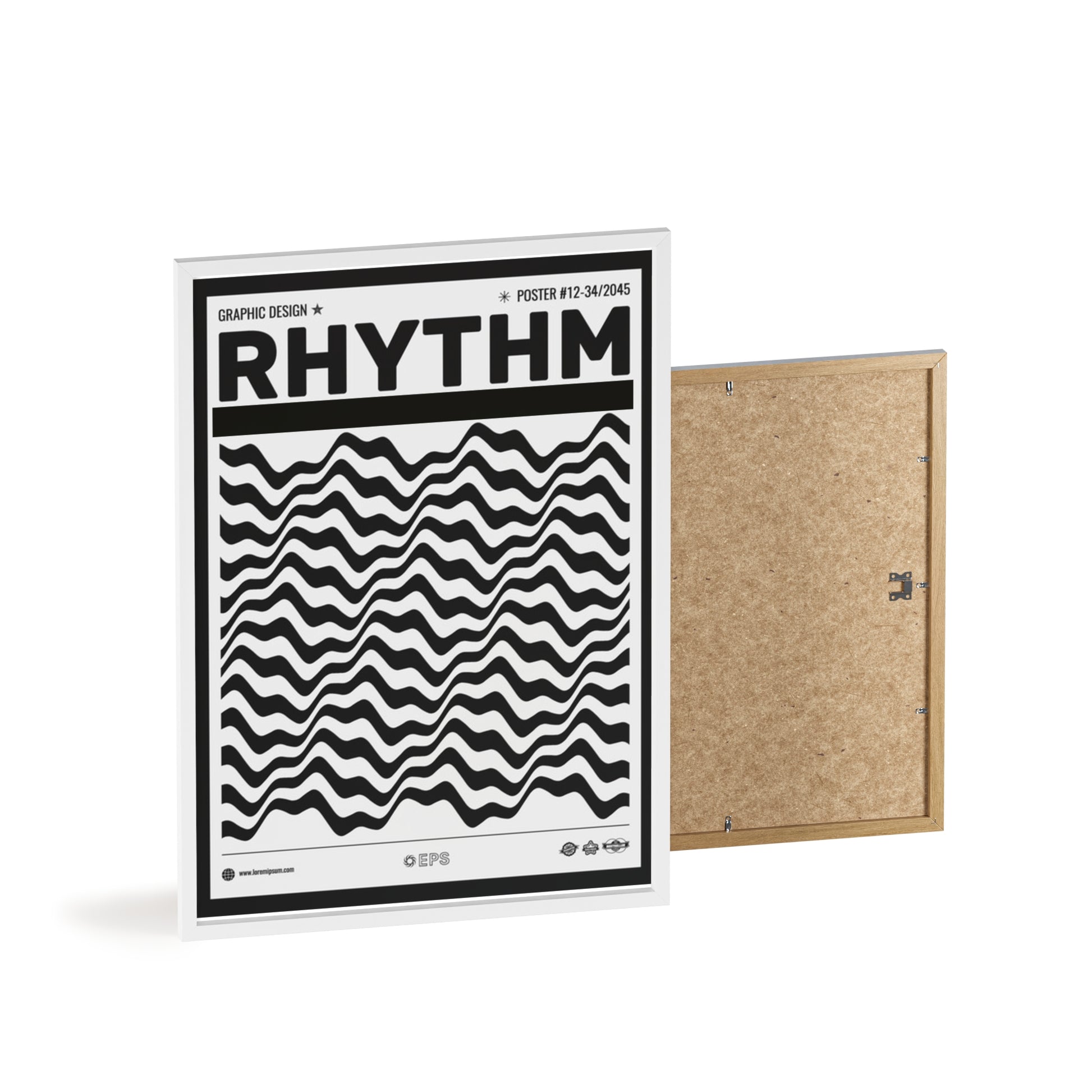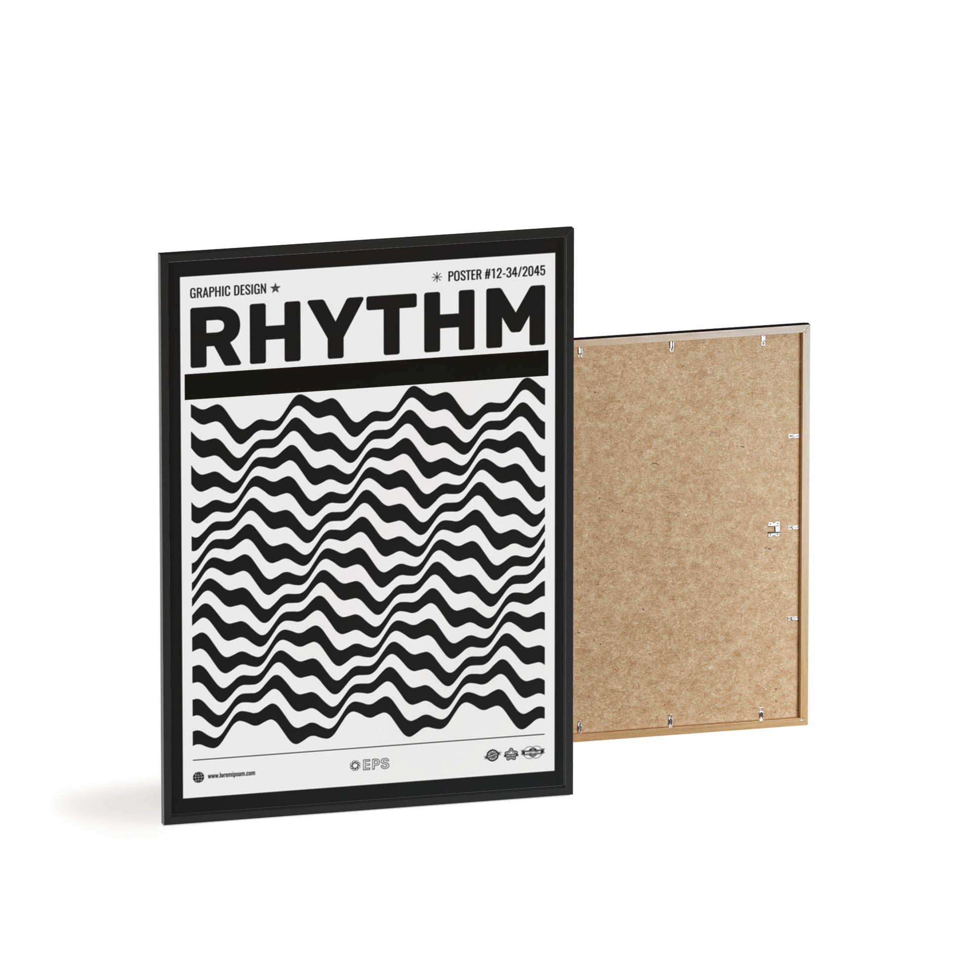 Simple, sculptural, and quietly bold — this framed poster brings modern rhythm to walls that crave clean lines and confident contrast. The pinewood frame (available in Natural, Black, or White) gently lifts the print, while the satin or matte 250 g/m² photo paper keeps blacks deep and patterns crisp. Arrives ready to hang with protective acrylic glass and mounting hardware, so you can place it on a gallery wall, a home office, or a music corner without fuss. It reads like a graphic statement piece: disciplined geometry, tactile frame, and a finish that holds up in everyday light.