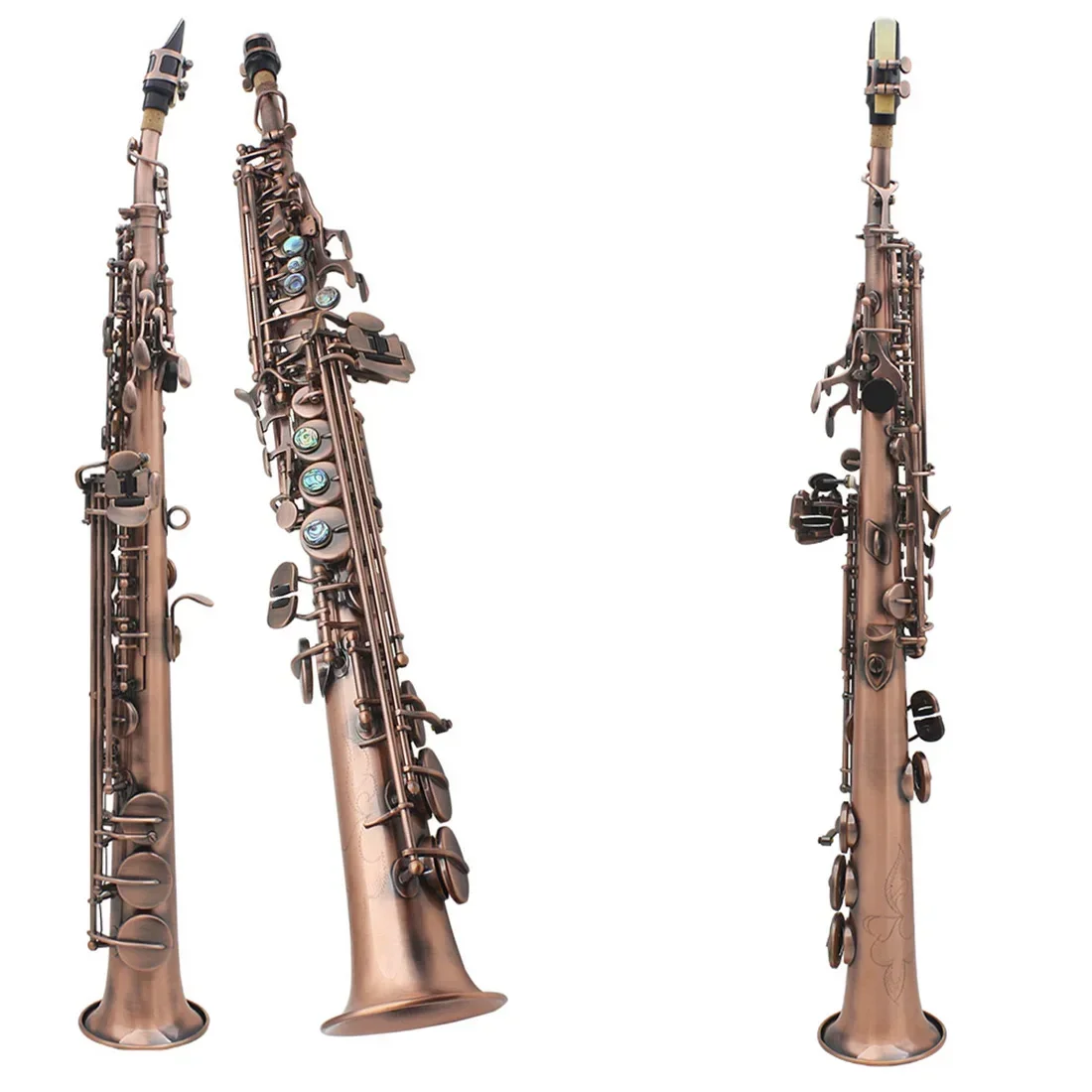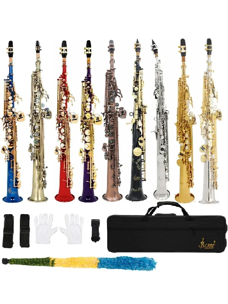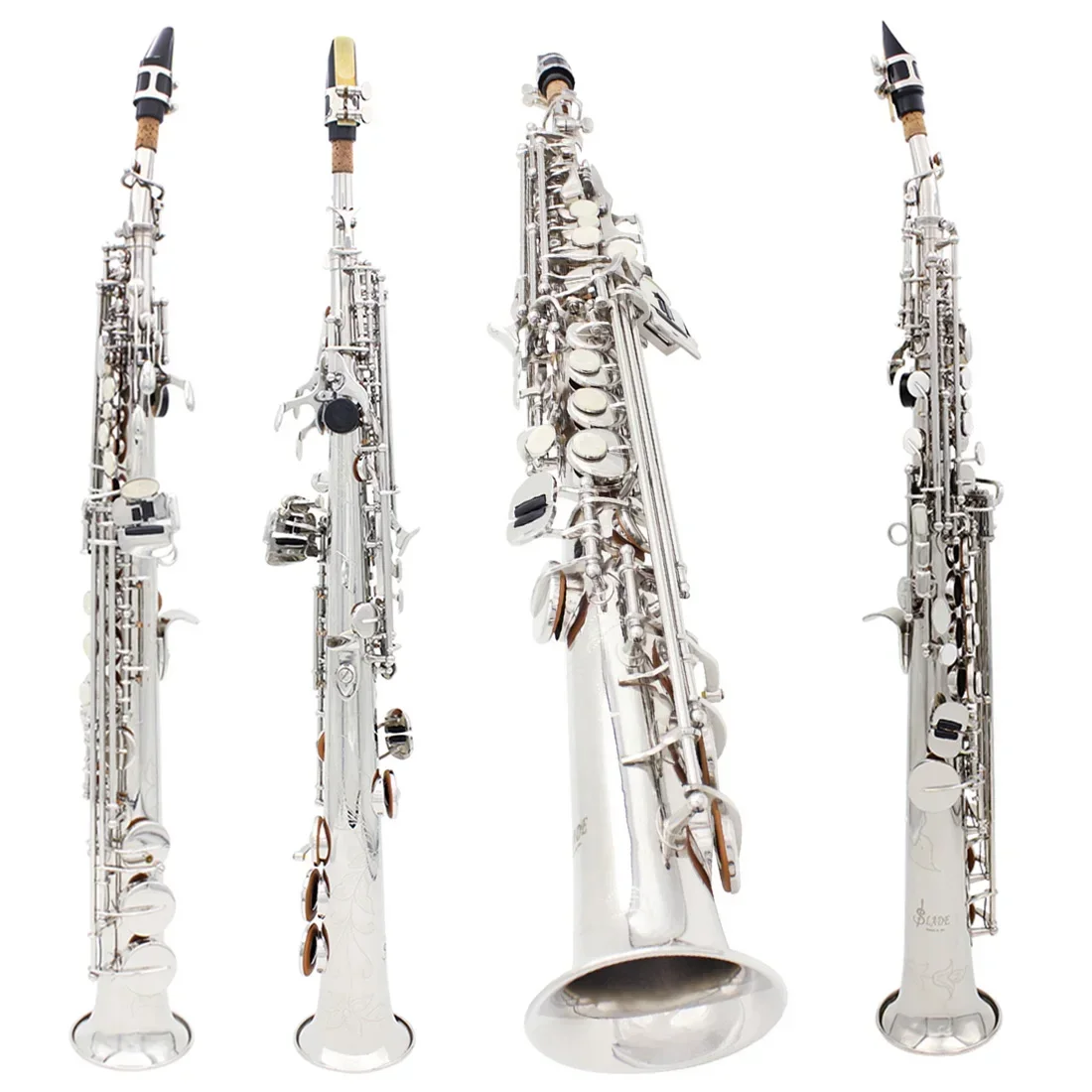 SLADE Soprano Saxophone - Bb/B Flat Natural Body Carved Design with Shoulder Case