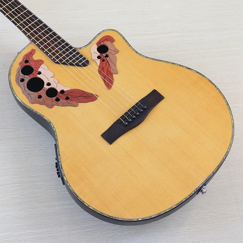 Solid Spruce Wood Top 41 Inch Round Back Electric Acoustic Guitar Cutaway Design 6 Strings Folk Style With Rusty Problem