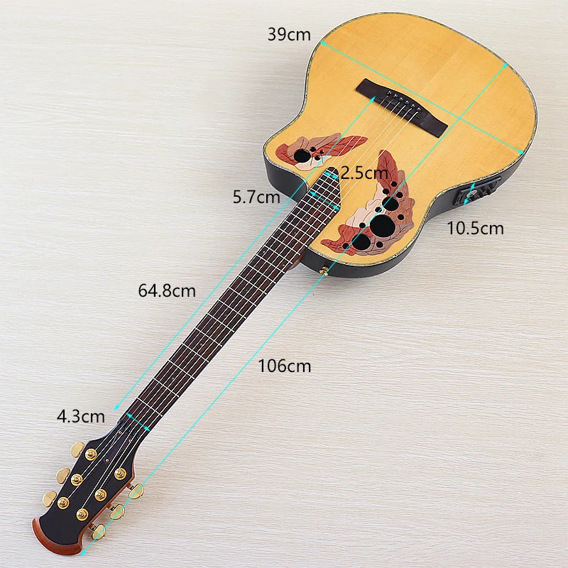 41" Round Back Electric Acoustic Guitar Cutaway Design - Folk Style