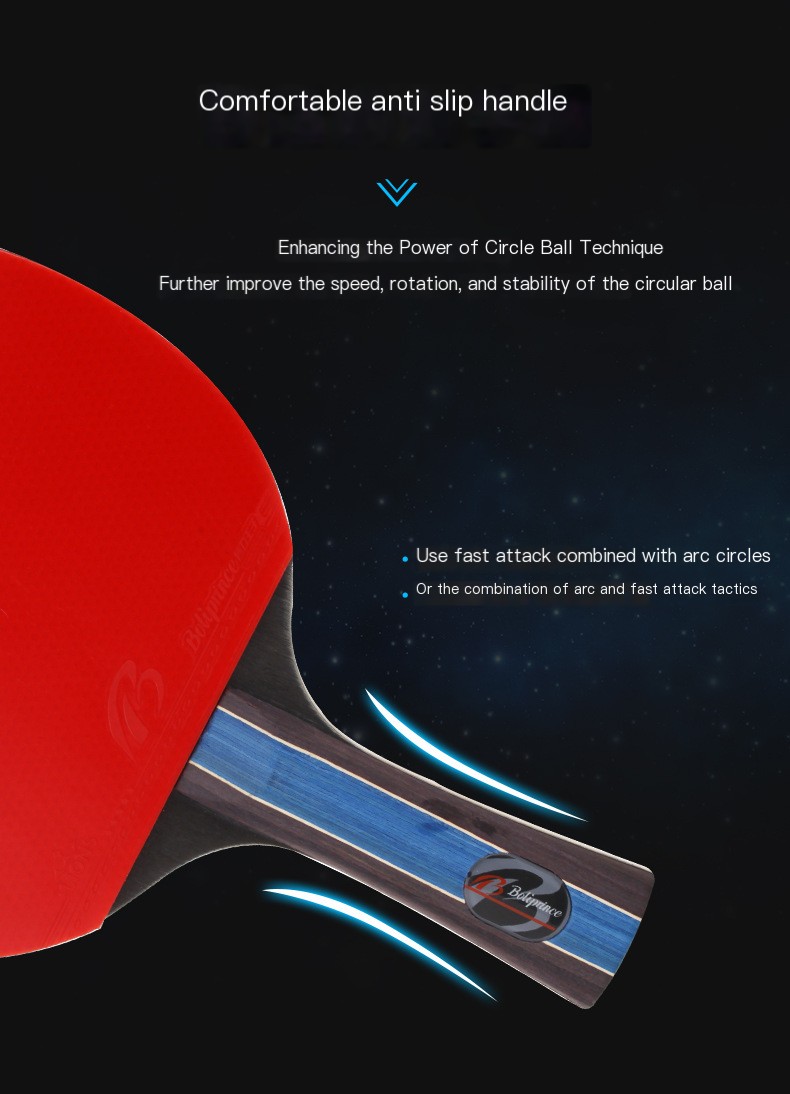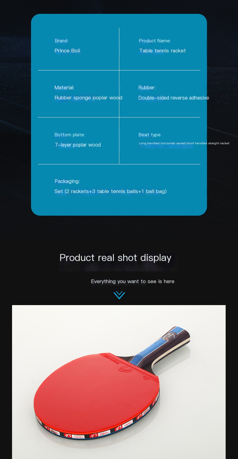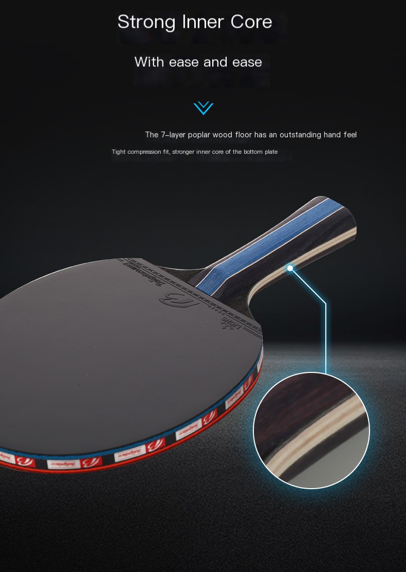 Crafted with a poplar wood bottom plate, our rackets strike the perfect balance between strength and lightweight maneuverability. The reverse glue rubber ensures enhanced spin and control, allowing you to execute those tricky shots with ease.