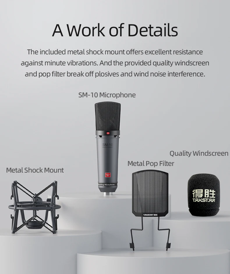 Takstar SM-10 Professional Recording Microphone Home Studio Voice Recording Equipment Condenser Microphones Wired XLR Mic