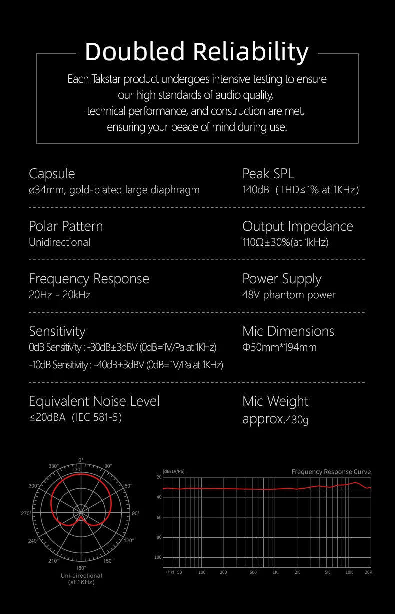 Note: The above data are measured by Takstar laboratory, and Takstar has the final interpretation right!