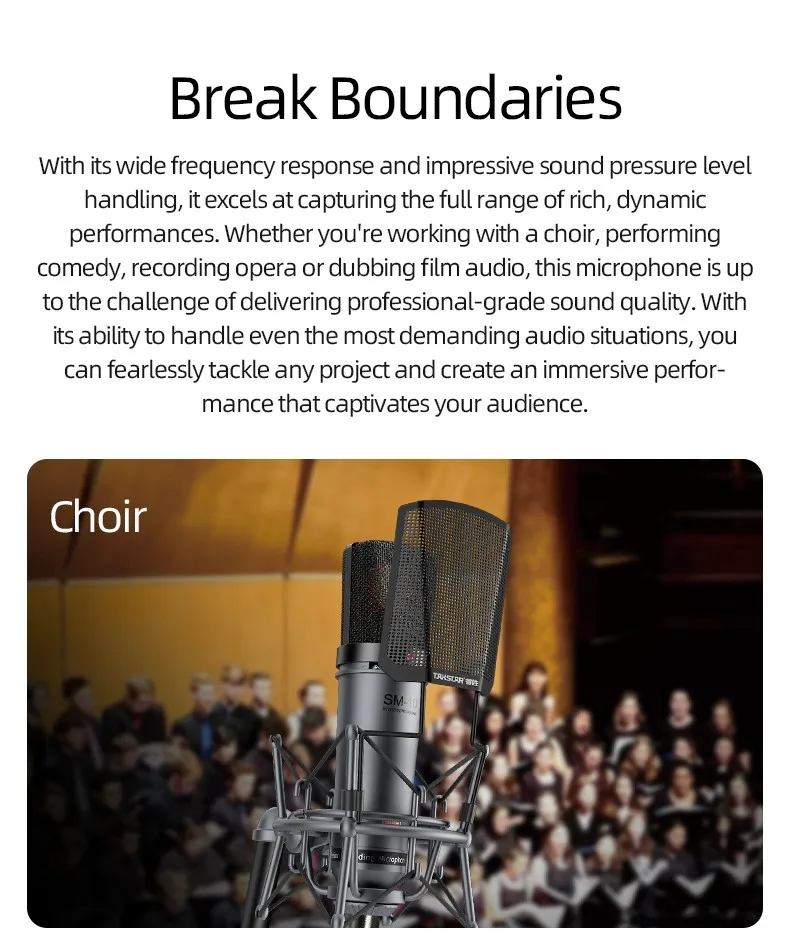 TAKSTAR SM-10 34mm Large diaphragm professional microphone,Laptop computer recording microphone,Karaoke sing computer microphone XLR microphone for • Chorus, professional recording, voiceover.