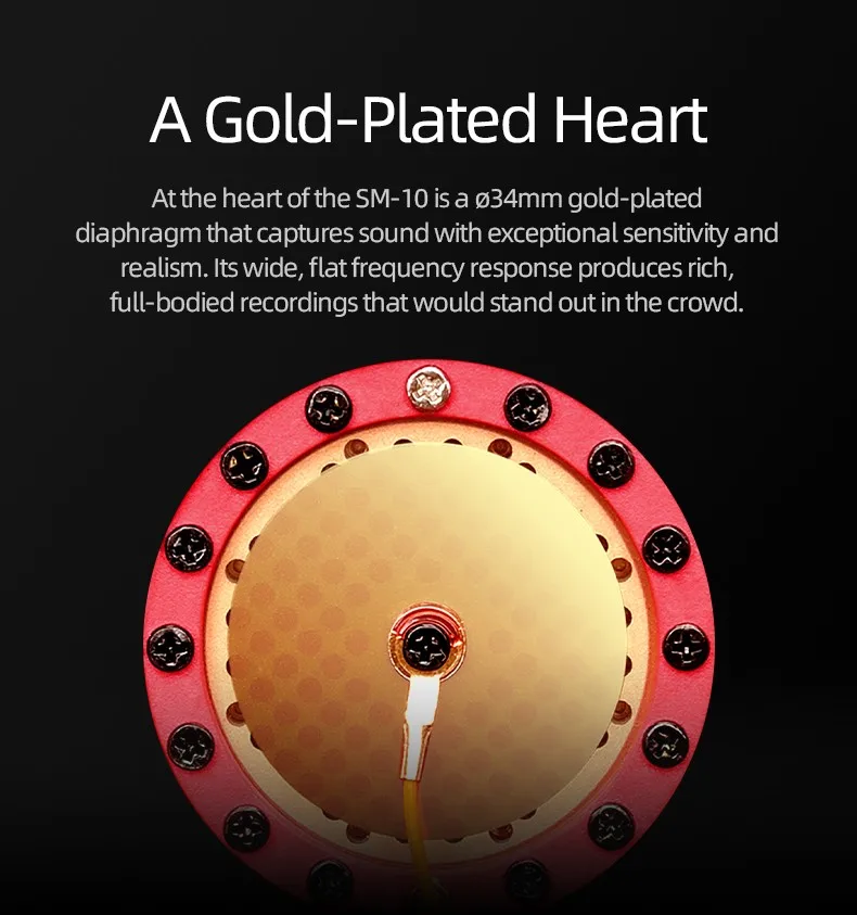 • ø34mm gold-plated large-diaphragm capsule with wide frequency response.