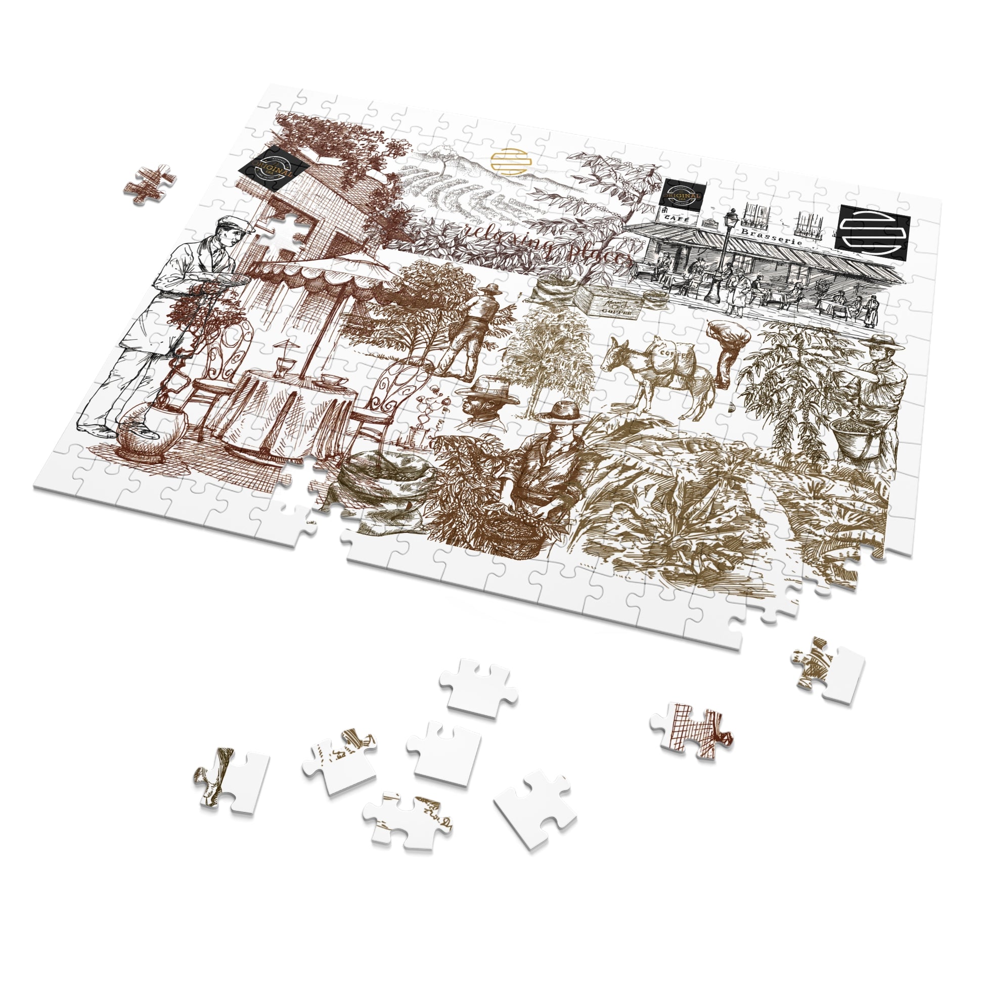 Vintage Cafe Culture Themed Jigsaw Puzzle with Tin