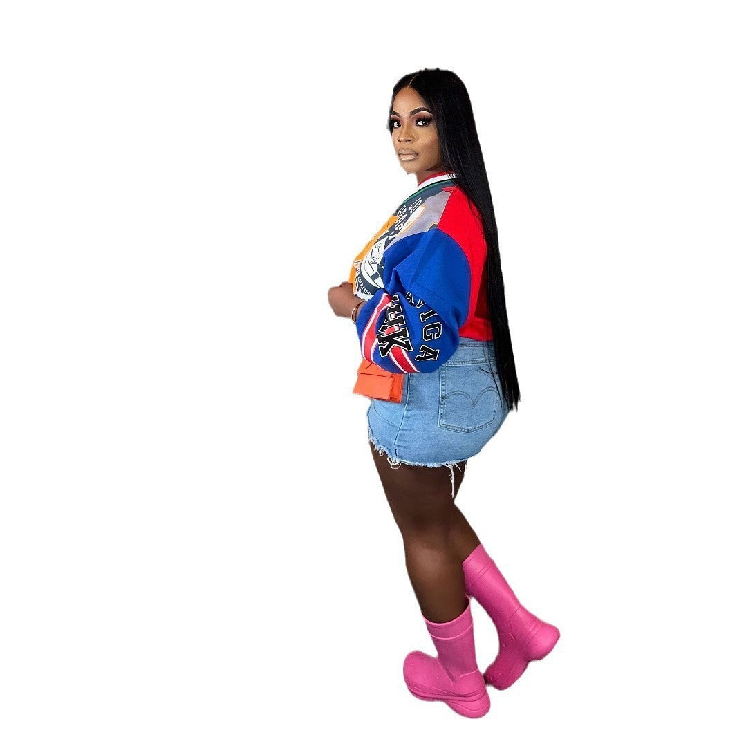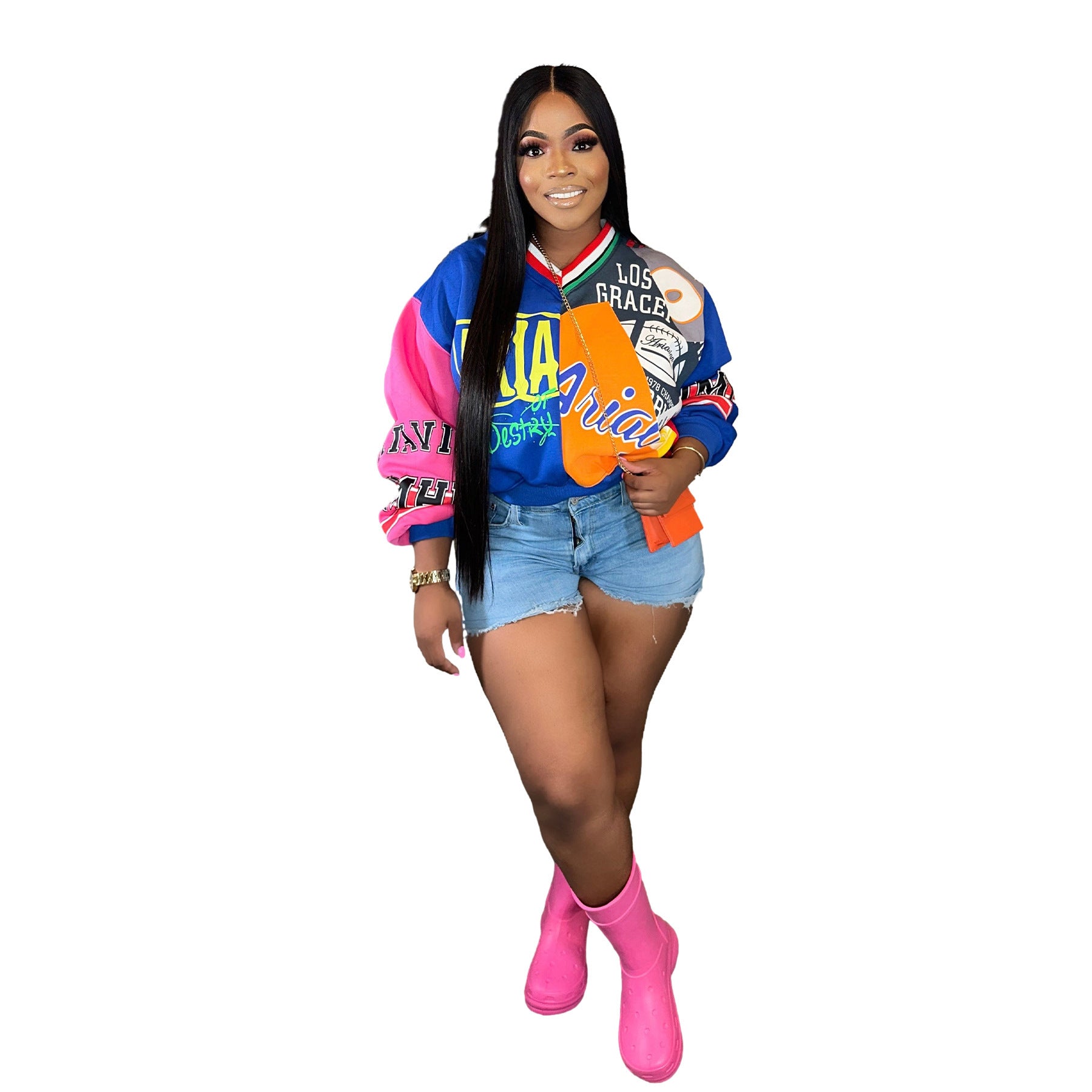 Women's Casual Contrast Color Loose V-neck Sweatshirt