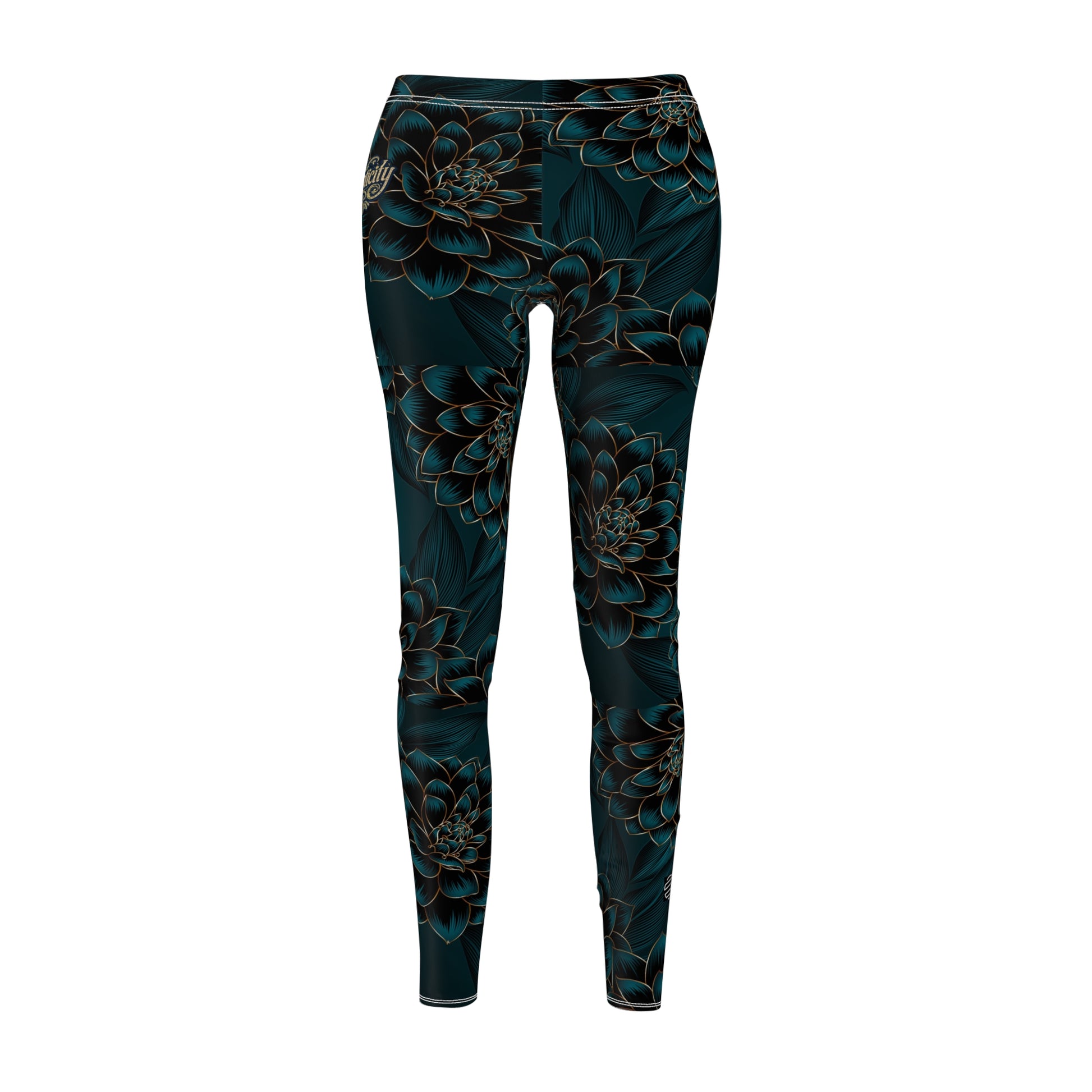 These slim, all-over print leggings bring a quiet, moody elegance to everyday wear. Soft brushed-suede fabric feels plush against the skin while 4-way stretch moves with you during errands, studio flows, or slow city mornings. Deep teal and charcoal floral motifs sit like shadows across the legs — understated, artful, and easy to layer under an oversized sweater or moto jacket. The mid-rise 1.5" waistband holds without digging; a tagless finish keeps the silhouette clean. Wear them when you want clothing that’s functional but also says something subtle about your taste: calm, a little enigmatic, and thoughtfully designed.
