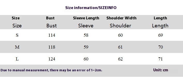 1. Asian sizes are 1 to 2 sizes smaller than European and American people. Choose the larger size if your size between two sizes. Please allow 2-3cm differences due to manual measurement. 2. Please check the size chart carefully before you buy the item, if you don't know how to choose size, please contact our customer service. 3.As you know, the different computers display colors differently, the color of the actual item may vary slightly from the following images.