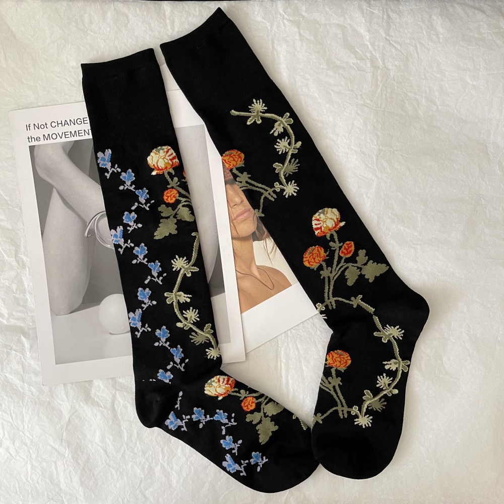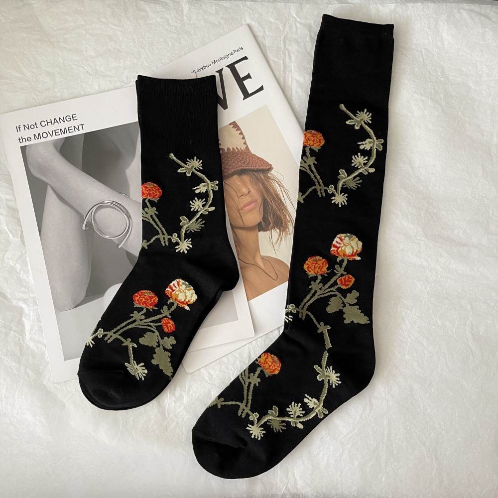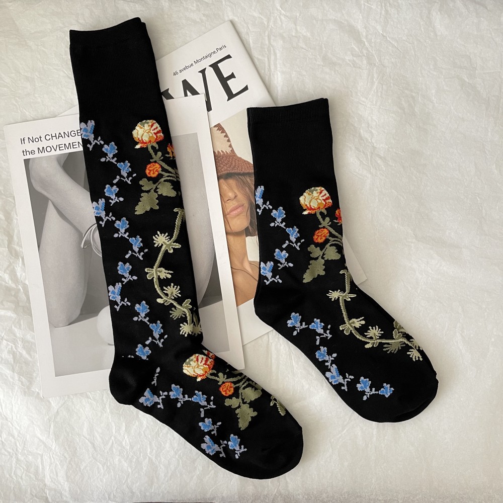 Featuring a beautiful floral design, these socks are not just practical but also a fashion statement. Perfect for any occasion, they add a touch of vintage charm to your attire.