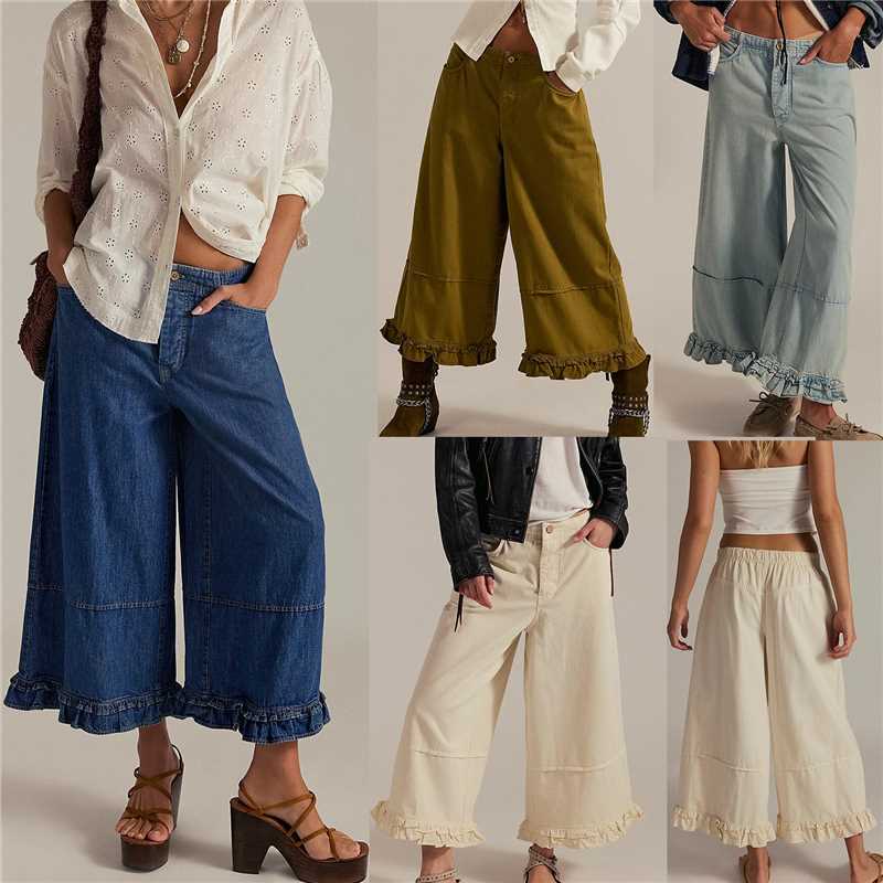 Women's Wide-leg Cropped Lace Jeans