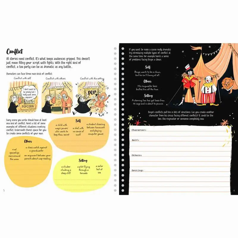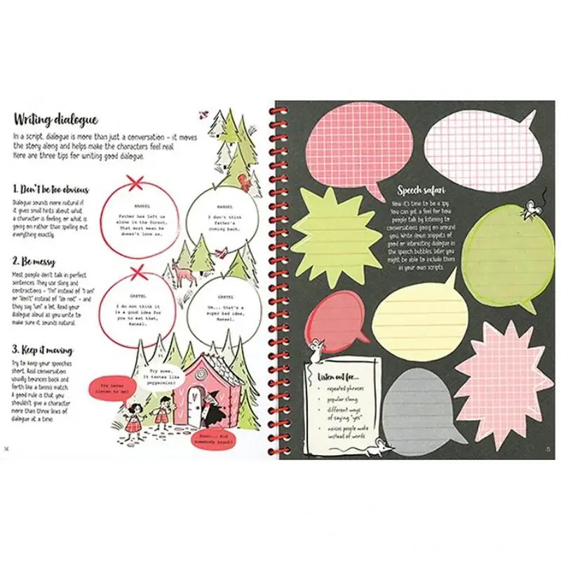 Book Summary Do you dream of becoming a screenwriter? This book will help you write all kinds of scripts—terrible, exciting, and hilariously silly. Every page is packed with tips and ideas that will help you every step of the way—from character development to dialogue writing to putting on your own show. Use Usborne's quick links to a specially selected website for more inspiration.